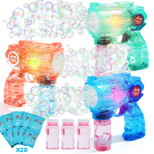 【3-Pack of Bubble Gun Blaster Set】You will get 3 bubble guns (blue pink and green),...