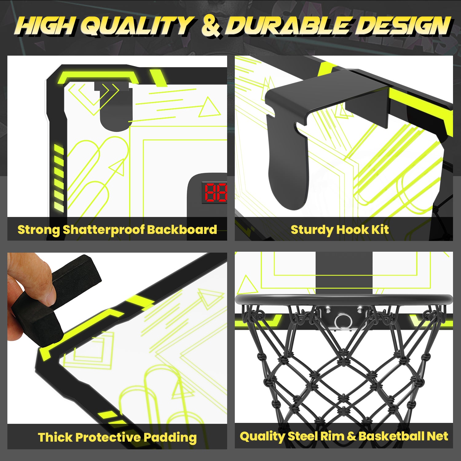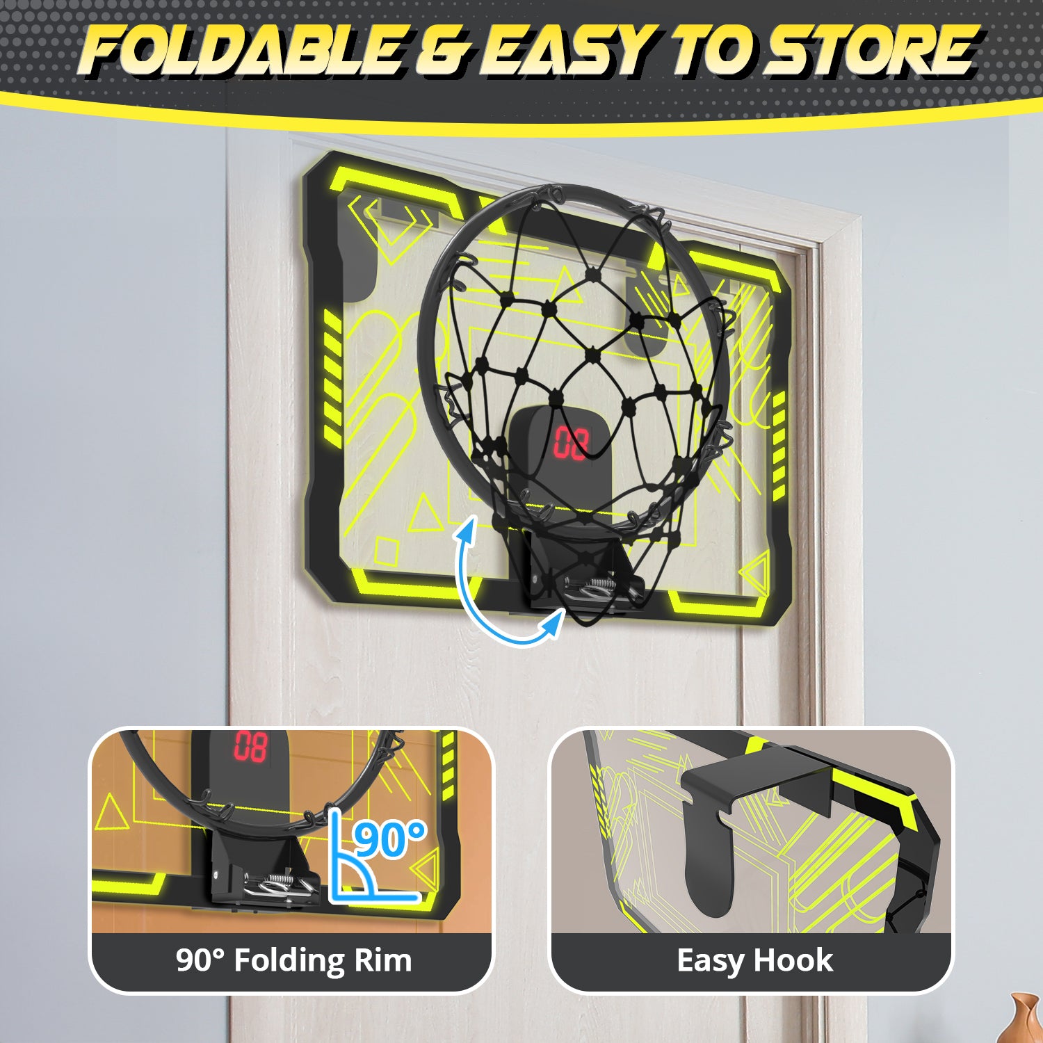 Indoor Mini Basketball Hoop for Kids with LED & Electronic Scoreboard, over The Door Basketball Hoop Toy with Foldable Rim, Birthday Gift for 5-13 Year Old Boys, Green