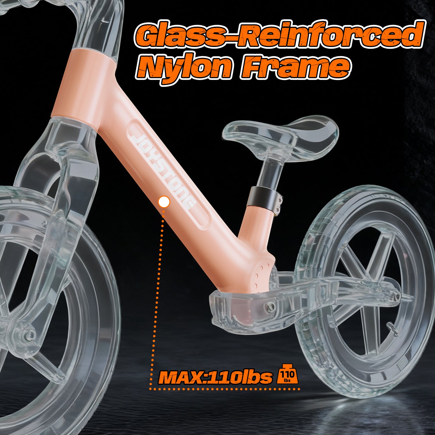 - 【Sturdy and Safe】Wide and tough nylon frame, supports up to 110 lbs, rubber grips designed for little hands to hold comfortably and safely, soft saddle let your little one enjoy cycling at an early age!