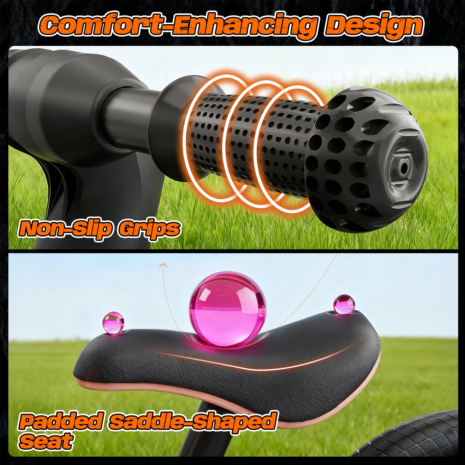 - 【Adjustable Seat】Featuring an adjustable seat (17.7"–19.7"), this balance bike adapts as your child grows, this toddler tricycle is designed to adapt and grow with your child.