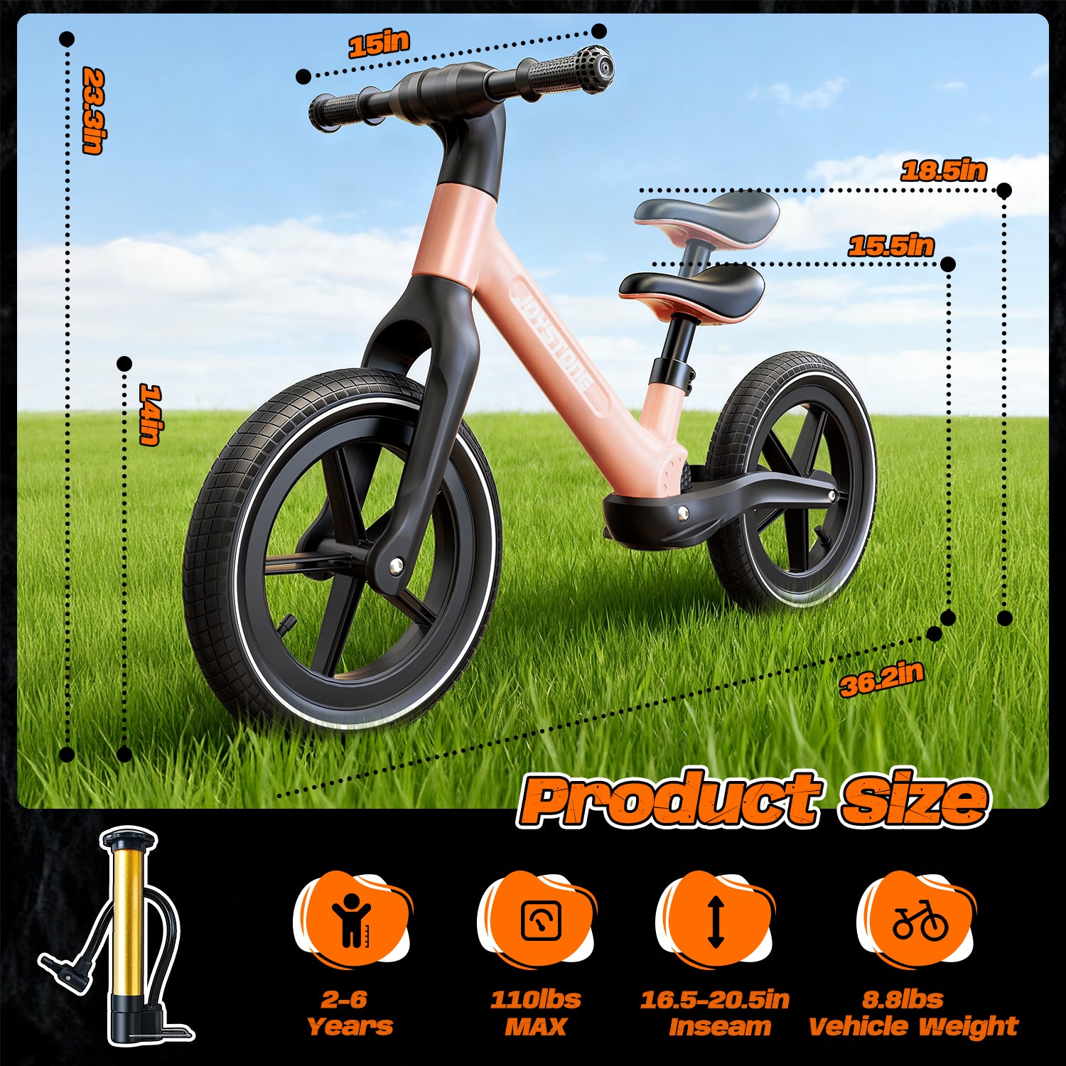 JoyStone 14 Inch Balance Bike for Kids, Toddler Balance Bike with Air Rubber Tires, Adjustable Seat, Lightweight No Pedal Training Bicycle, Gift Bike for 3-6 Boys Girls, Pink