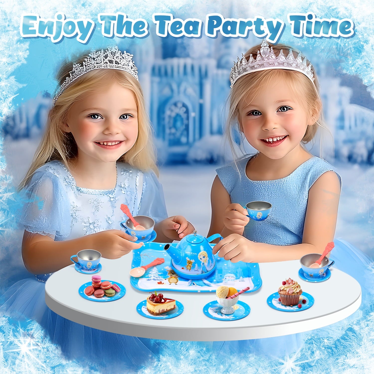 JoyStone 19PCS Kids Tea Party Set Includes Kettle, Princess Tea Time Toys Playset Kitchen Pretend Play Toy for 3-10 Years Old, Blue