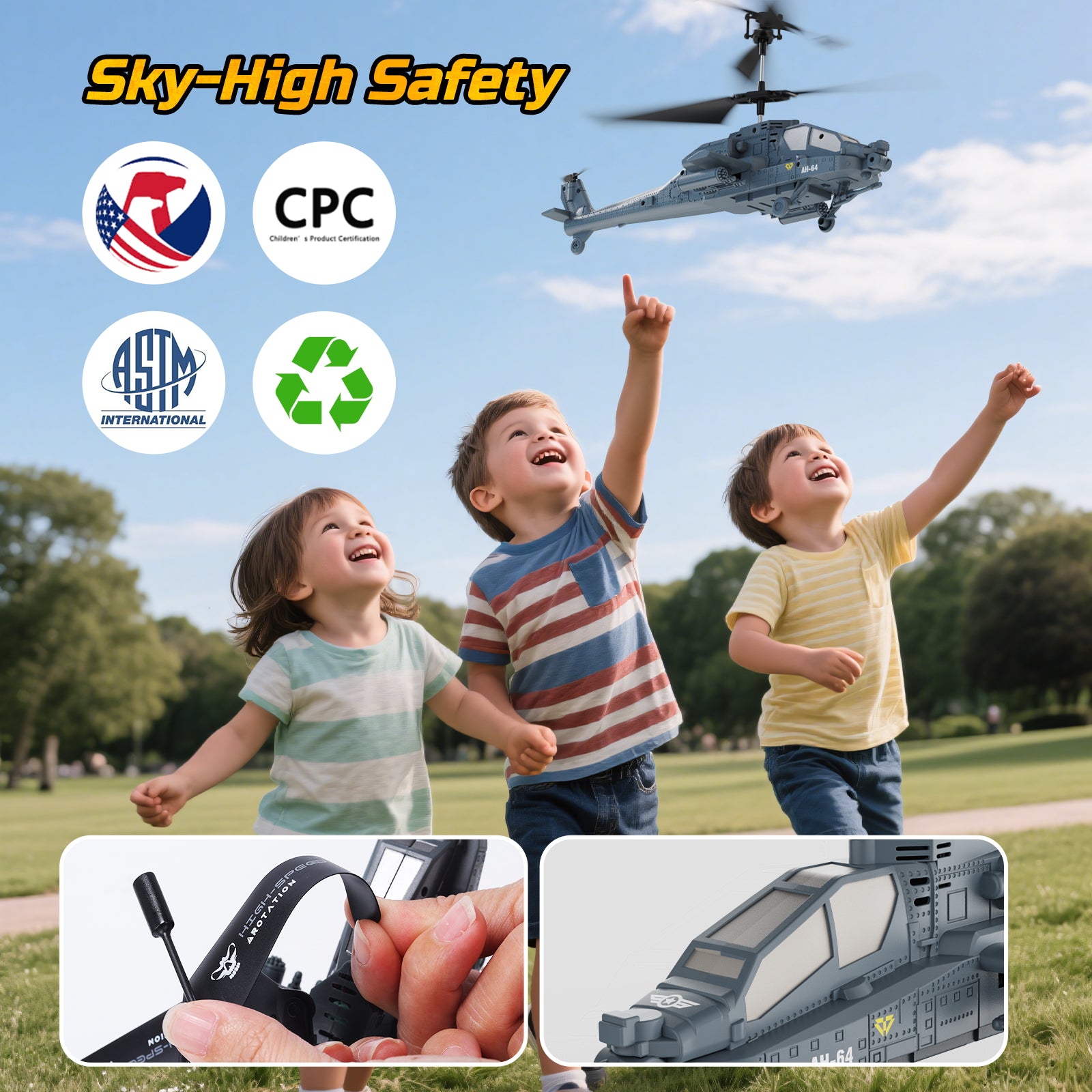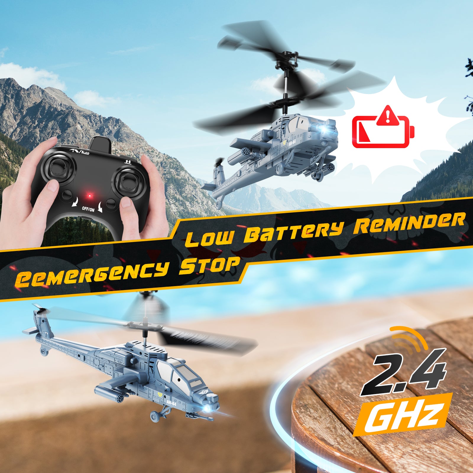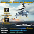 JoyStone RC helicopter offers a cool, realistic look. It's beginner-friendly with one-key takeoff/landing and a stable gyro. Equipped with dual motors, it has multi-channel control and three-speed modes. Safety features like auto power-off and emergency brake ensure protection. A high-end spotlight, durable materials, and long-lasting modular batteries make it great and ideal as a gift.
