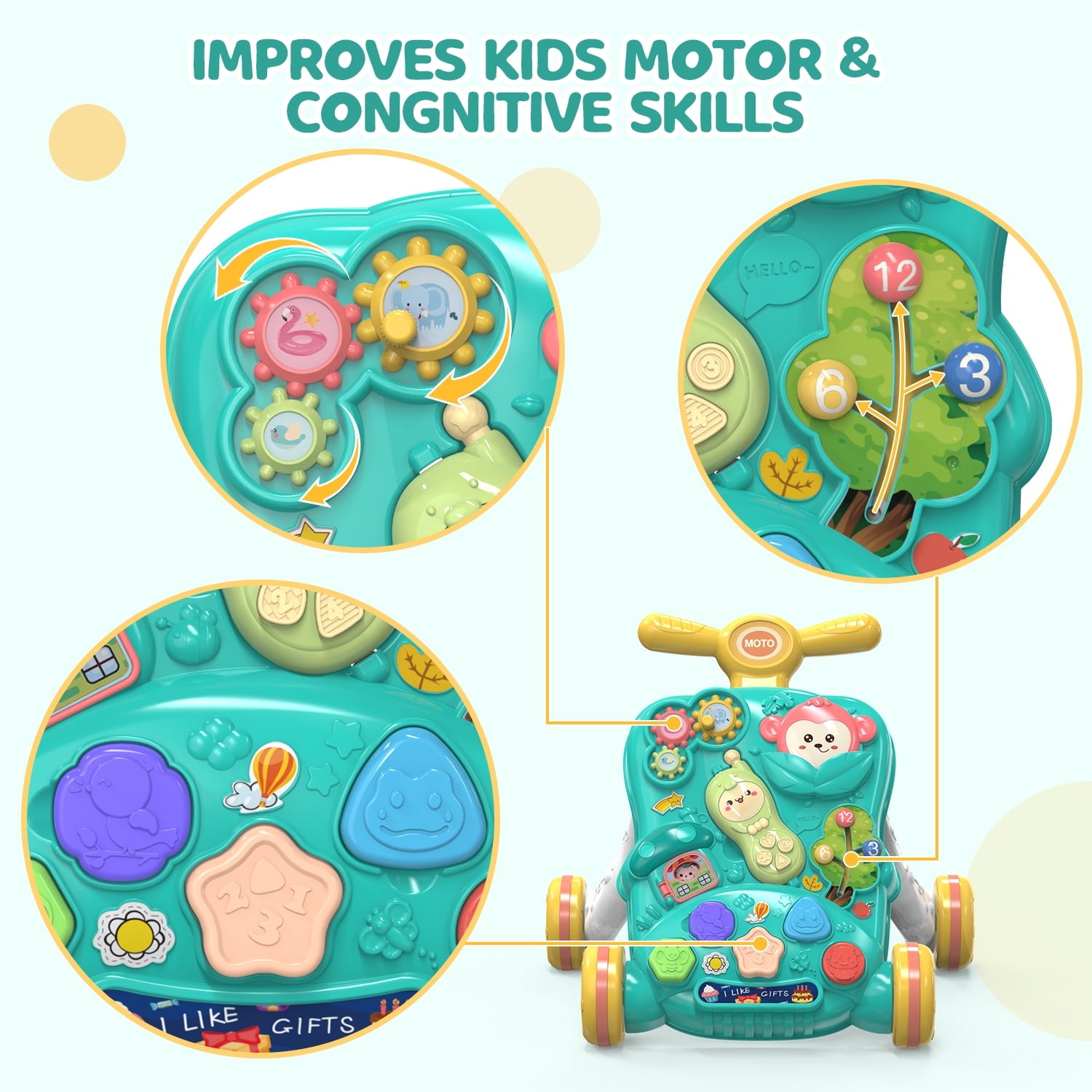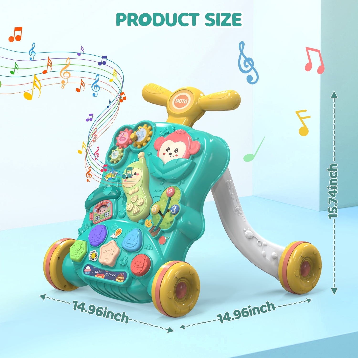 JoyStone Baby Push Walkers, Kids Multiple Activity Center, Lights, Music, Early Learning Push Toys, Toy Gift for Infant Boys Girls, Green