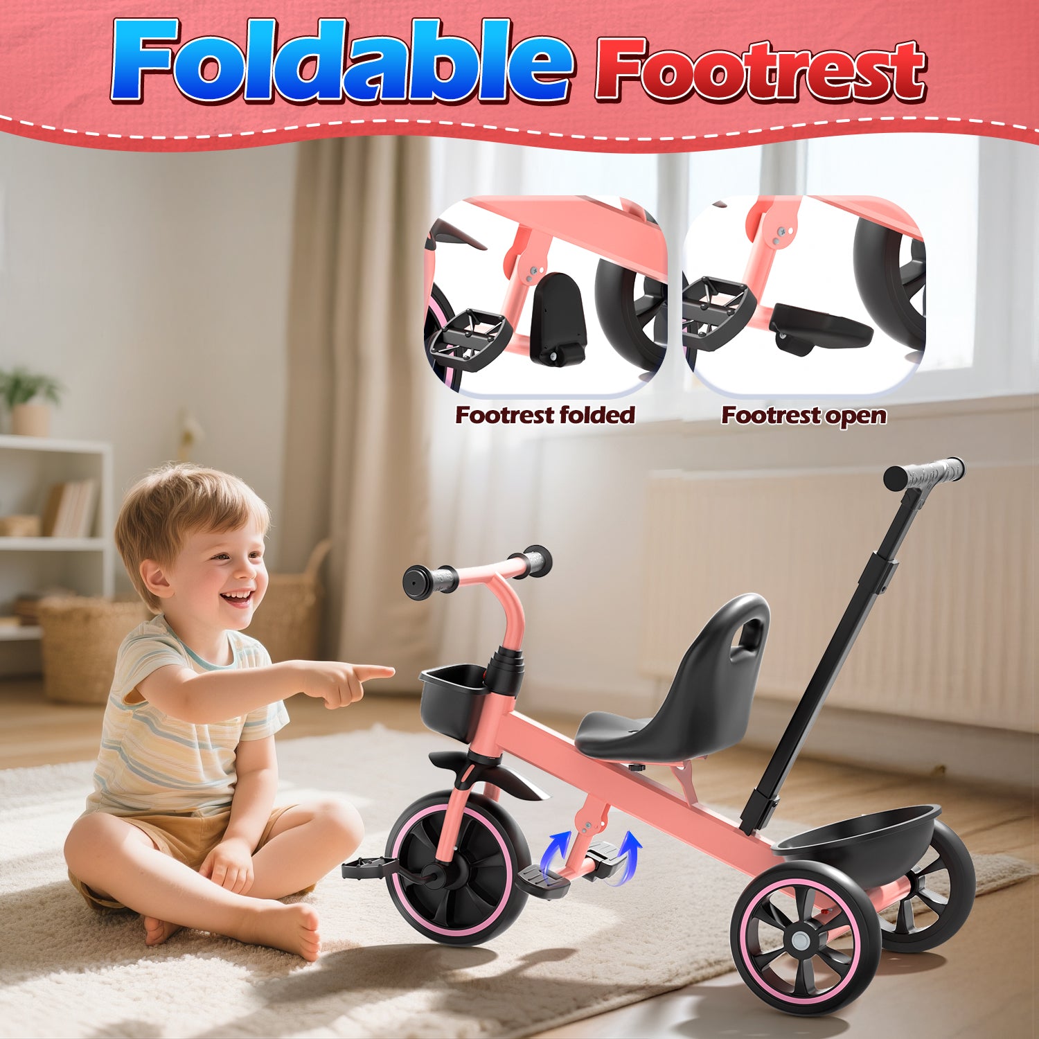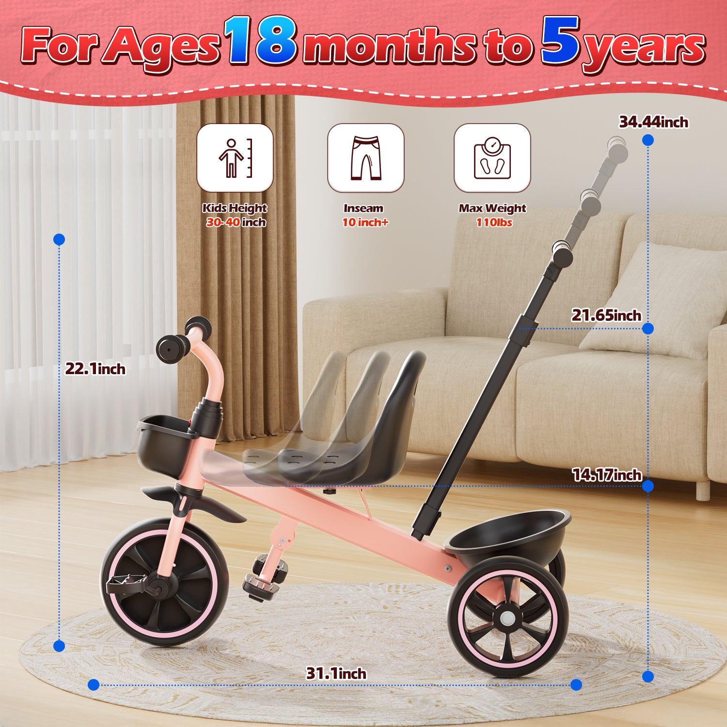 - 【2-in-1 Toddler Tricycle】Features Push Tricycle, Pedal Tricycle modes. Detachable push handle, easy to switch. Multifunctional tricycle is suitable for toddlers 1-5, this toddler tricycle is designed to adapt and grow with your child. Effortlessly switch between modes for seamless transitions.