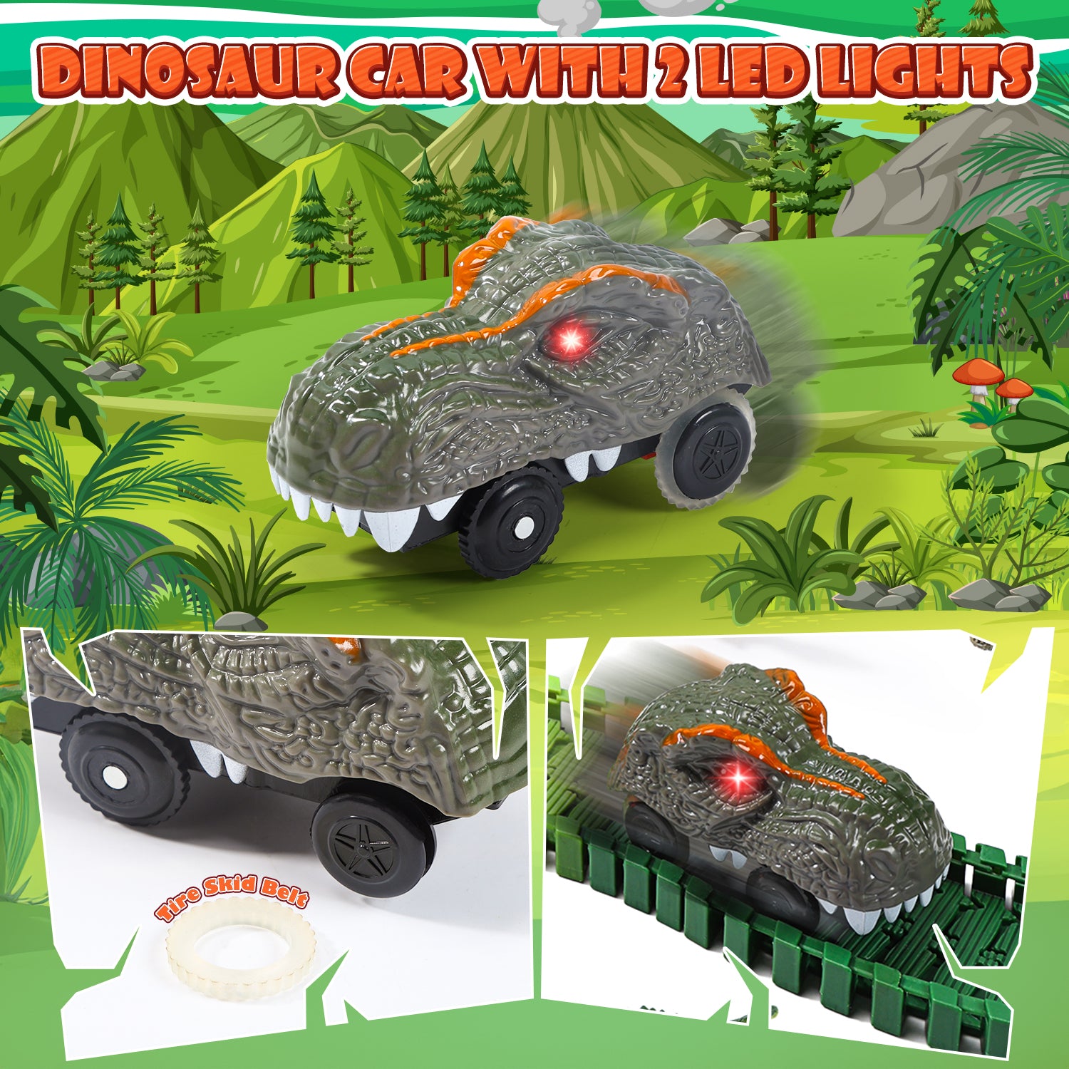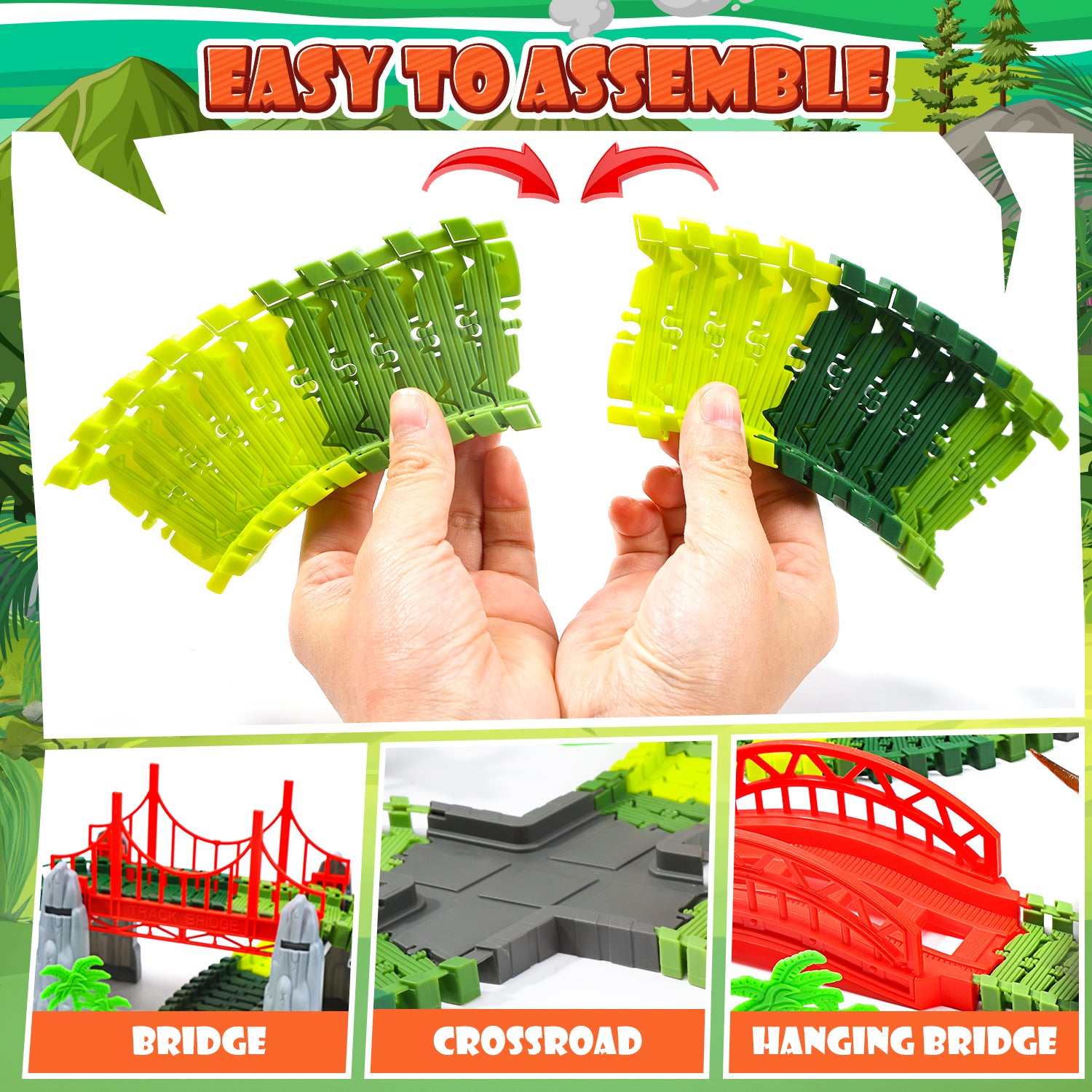 - Easy to Assemble - Our dinosaur car track is dynamic and can twist left or right so that it can be assembled into different shapes. Children can fully use their imagination and create their tracks, bringing endless fun.