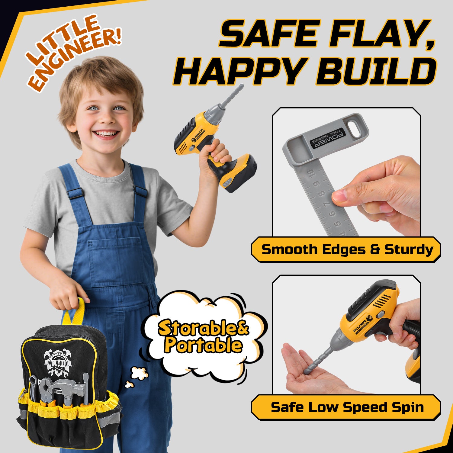 JoyStone Kids Tool Set 28PCS with Toy Drill, Backpack, Pretend Construction Toys for Toddlers Boys Girls Ages 3-5