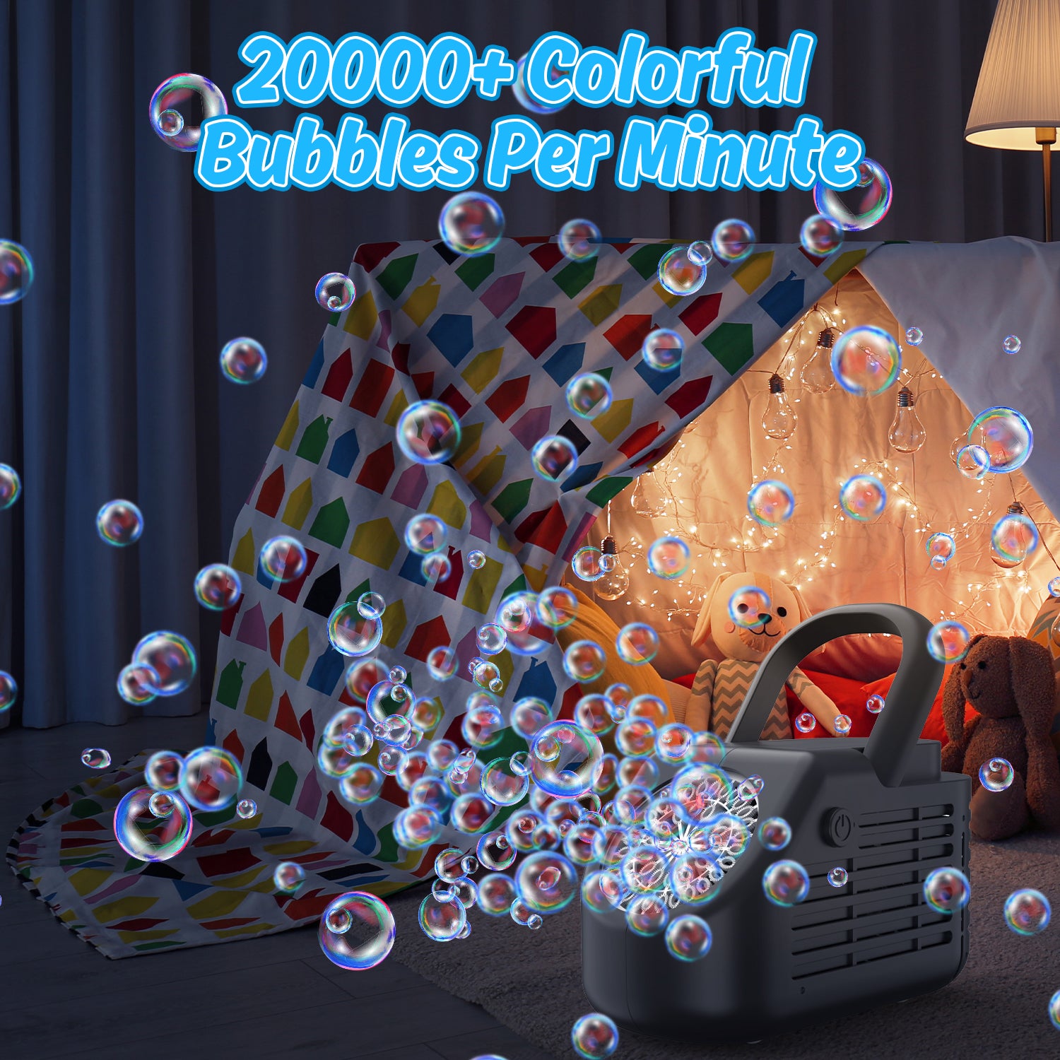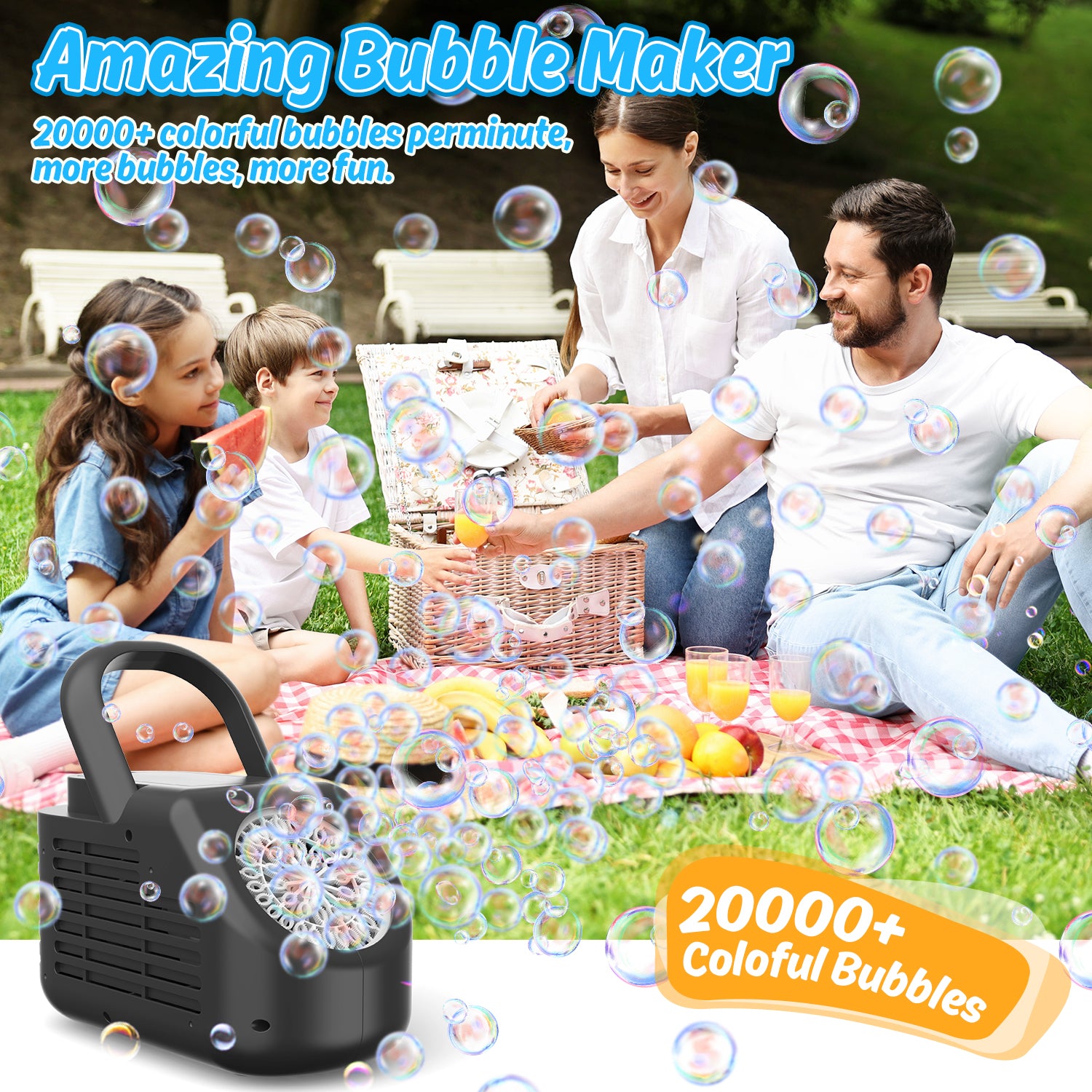 JoyStone 42 Hole Automatic Bubble Machine, High-Output Bubble Maker, 20000+ Bubbles/Minute, Portable Handle, Perfect for Outdoor Parties, Gifts for 3+ Ages, Black