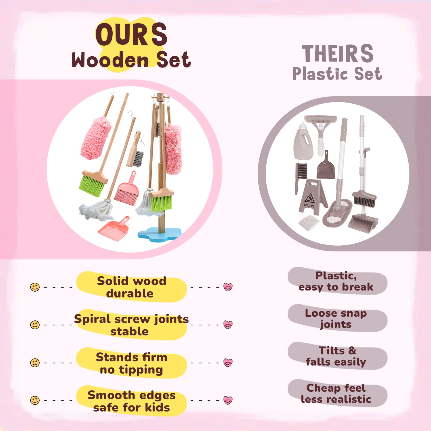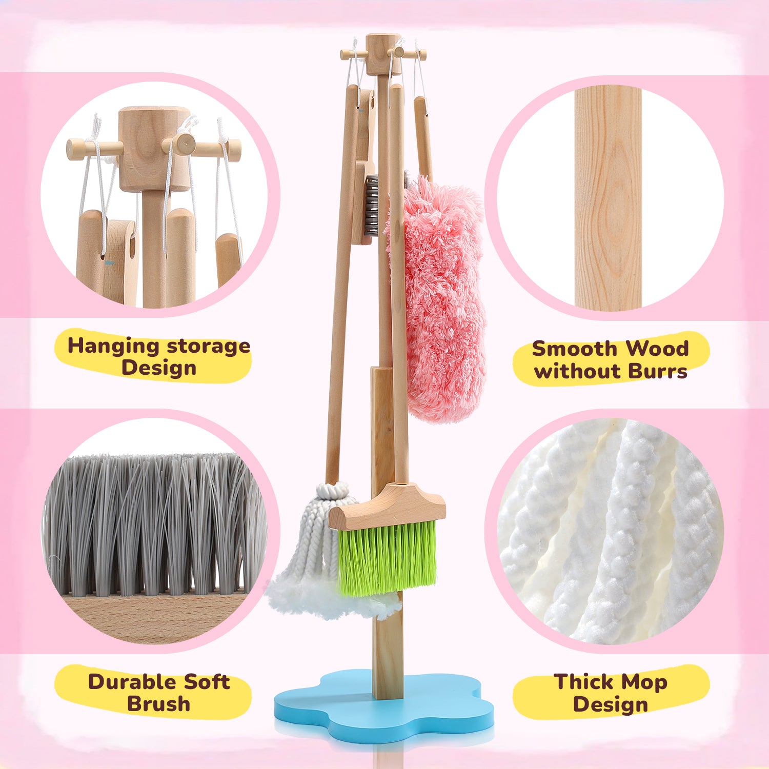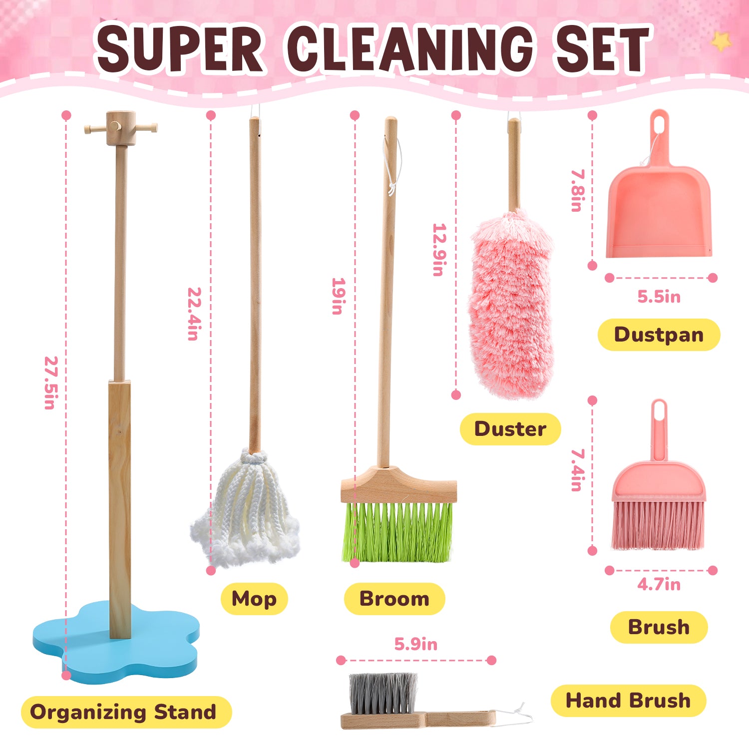 - 🎀 Cute & Engaging Pink Design – This adorable wooden toddler cleaning set features a charming pink color, making cleaning fun and exciting for little girls while teaching valuable life skills.