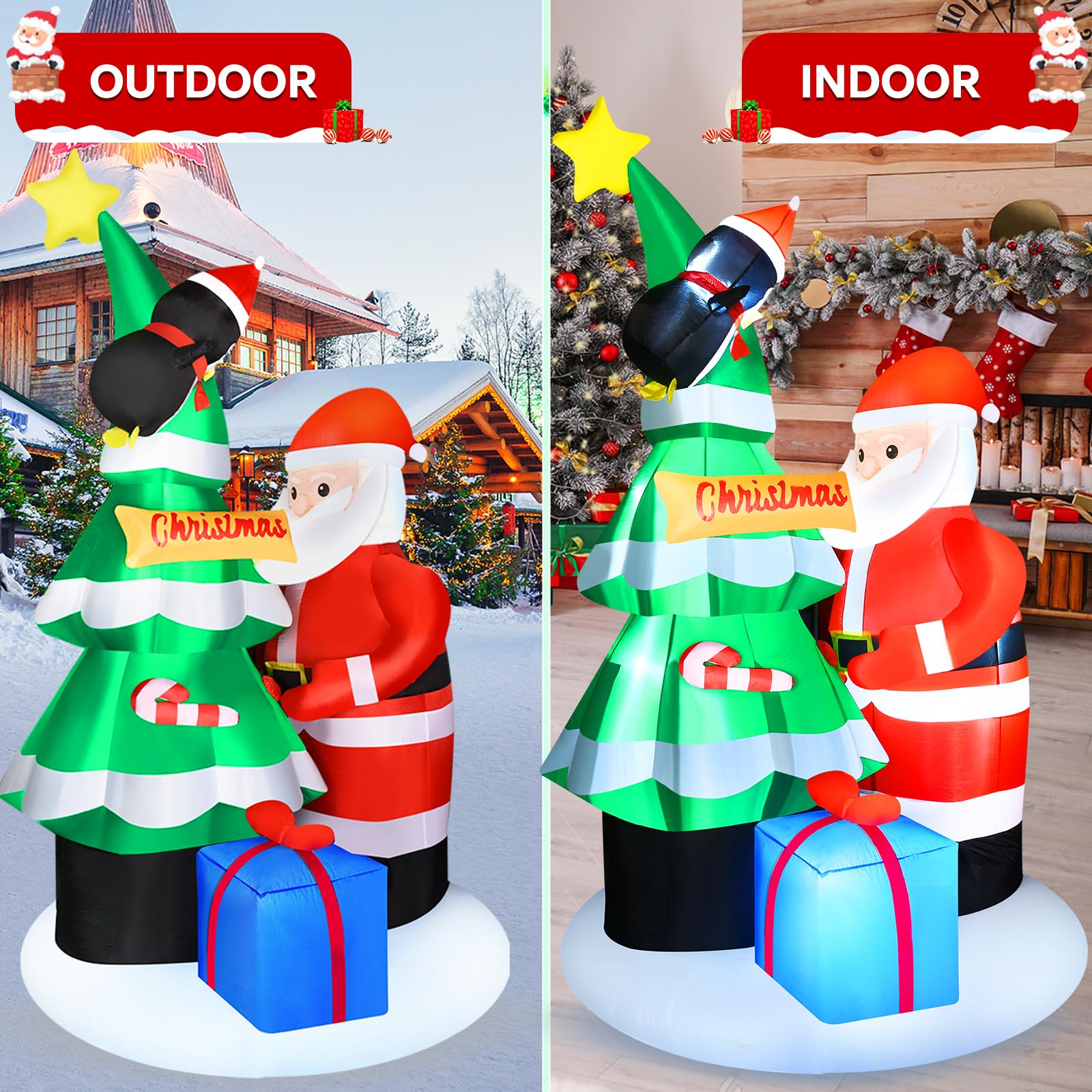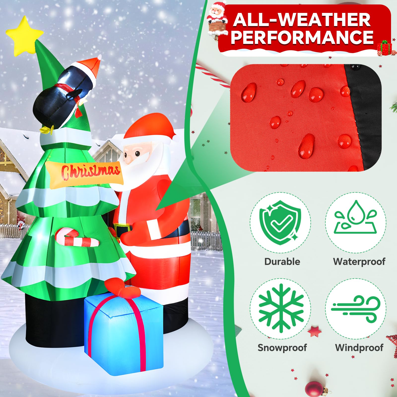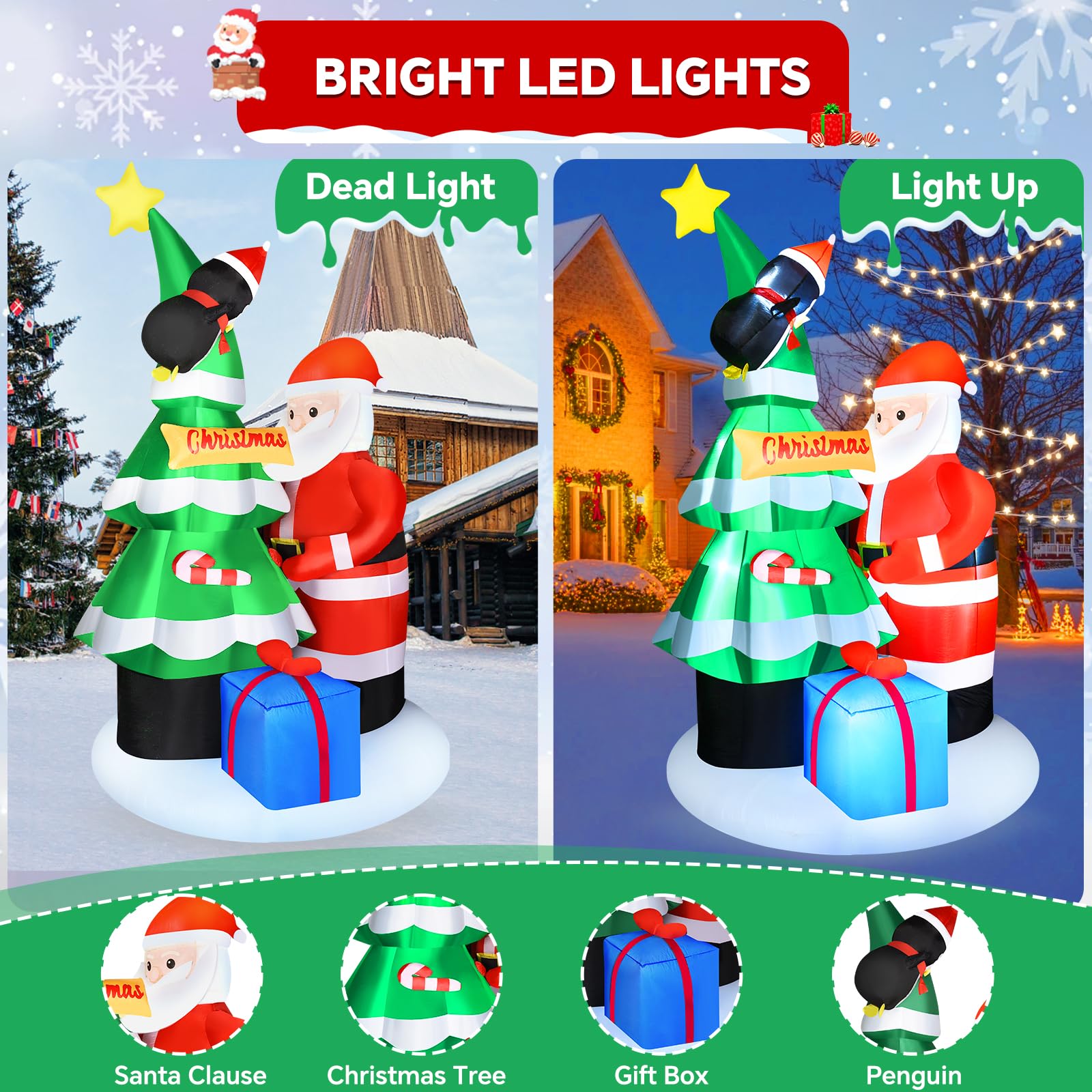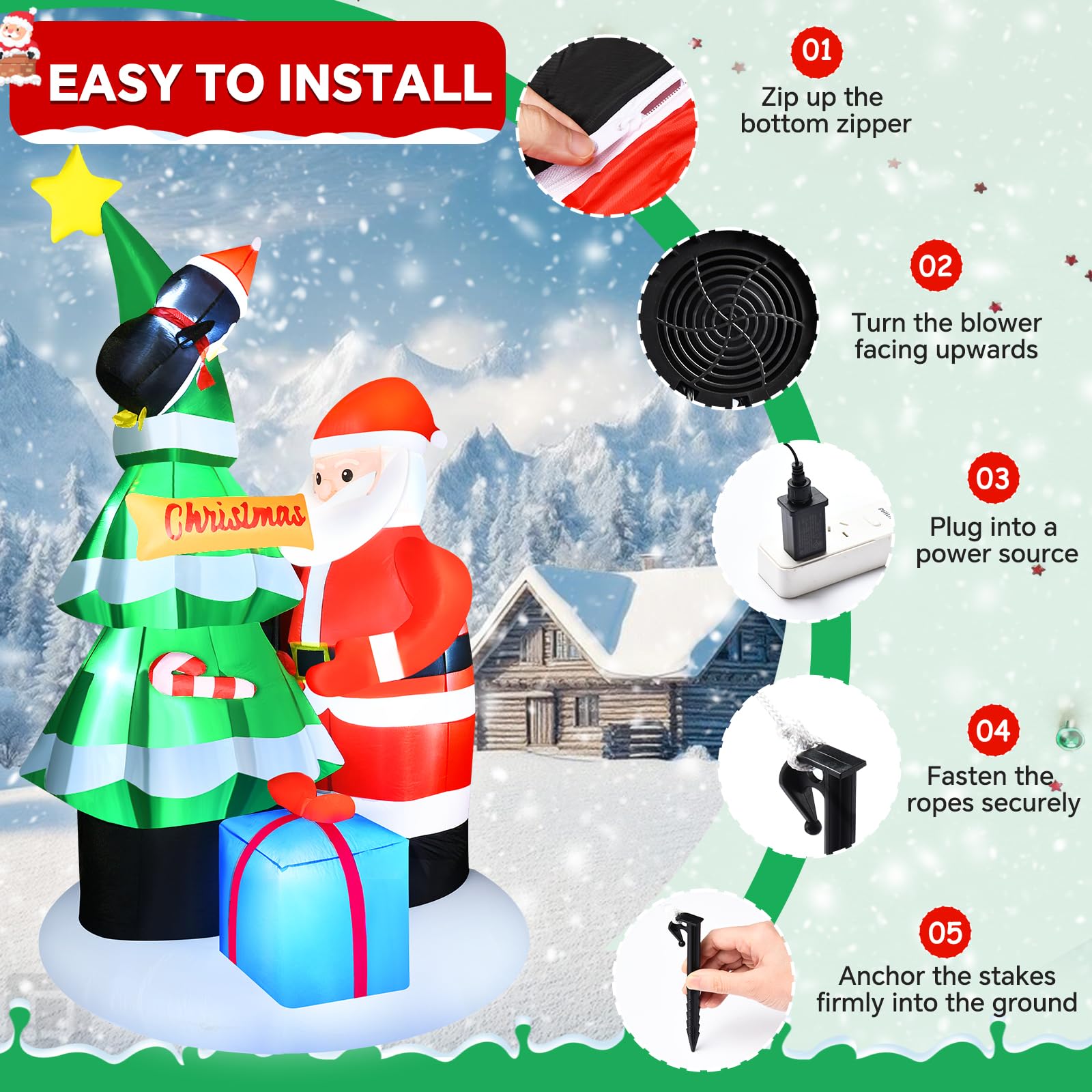 - 【Eye-Catching Holiday Decoration】This 8FT inflatable featuring Santa, a gift box, and a festive tree creates a charming holiday scene that enhances your yard’s seasonal spirit.Standing an impressive 8 feet tall, it’s sure to make your yard stand out and you'll get lots of compliments from neighbors and guests.