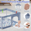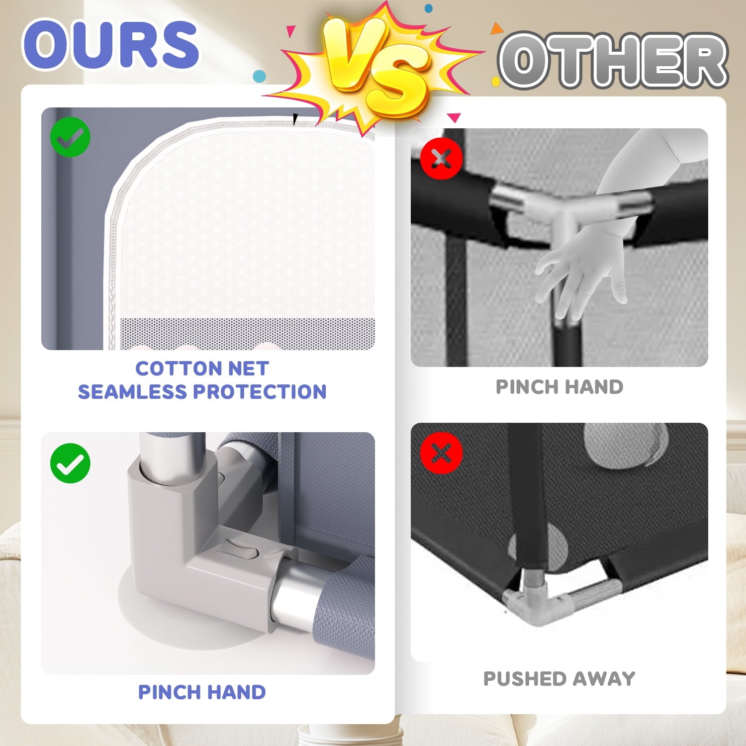 Equipped with 2 pull rings, it encourages your child to stand and develop their motor skills. The playpen also includes 8 anti-slip base supports for maximum stability on any surface, making it ideal for both indoor and outdoor use. The breathable mesh sides allow full visibility, while the lightweight design and included carry bag make storage and transport effortless.