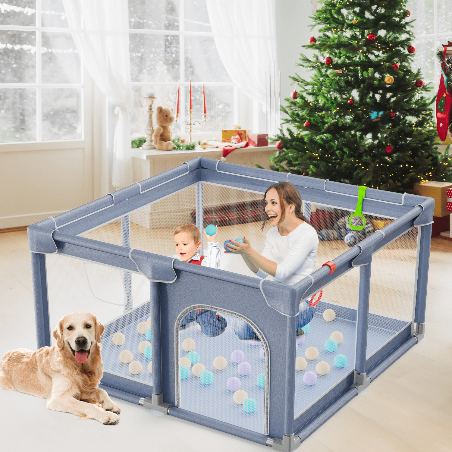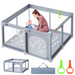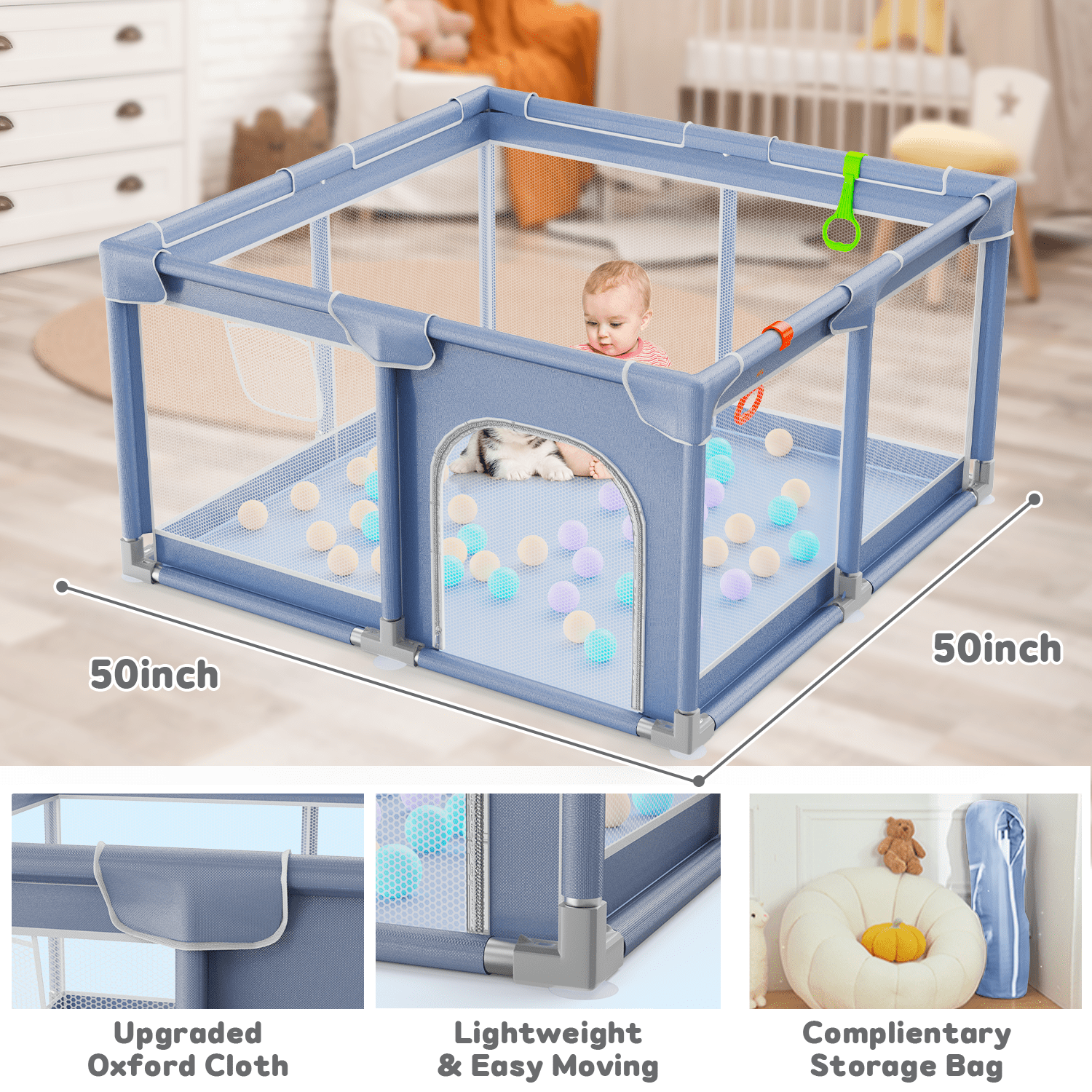 JoyStone Baby Playpen 50''x50'' Inches, Safe Non-Slip Base Play Yard with Soft Breathable Mesh, 2 Pull-Up Rings & Carry Bag, Sturdy Indoor & Outdoor Baby Activity Center for Toddlers, Gray