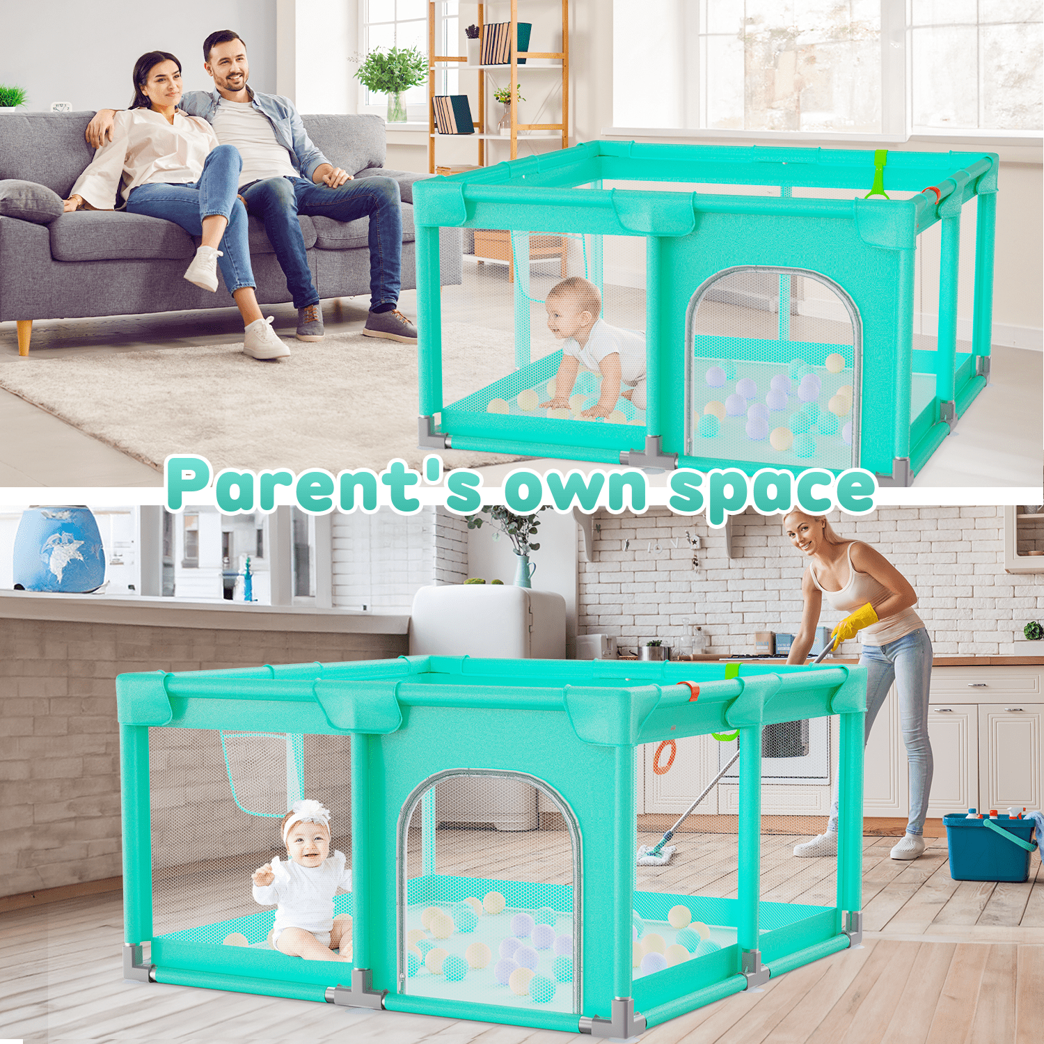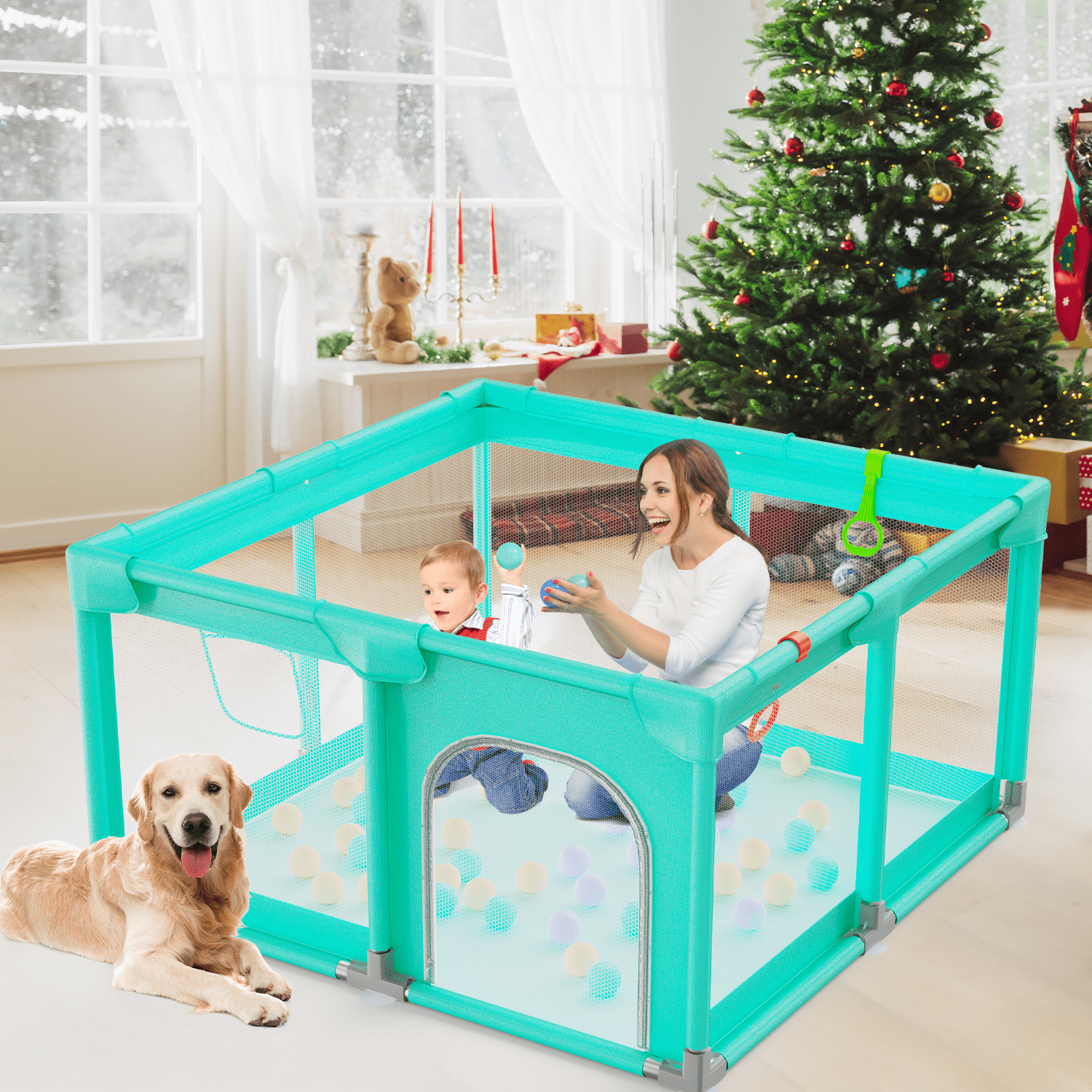 JoyStone Baby Playpen 50''x50'' Inches, Safe Non-Slip Base Play Yard with Soft Breathable Mesh, 2 Pull-Up Rings & Carry Bag, Sturdy Indoor & Outdoor Baby Activity Center for Toddlers, Green