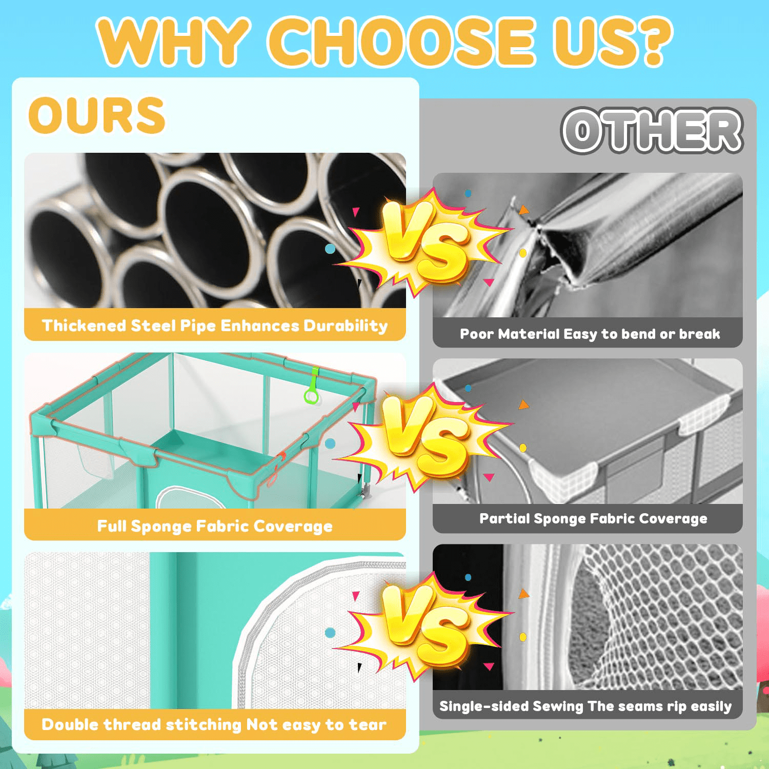 Provide your little ones with a safe and fun play space using our JoyStone Baby Playpen 50x50 Inches. Designed for babies and toddlers, this sturdy play yard features a reinforced structure with durable bars covered in soft foam for extra protection. The 360¡ã safety fully enclosed design ensures peace of mind, offering a secure environment where your baby can explore, crawl, or play.