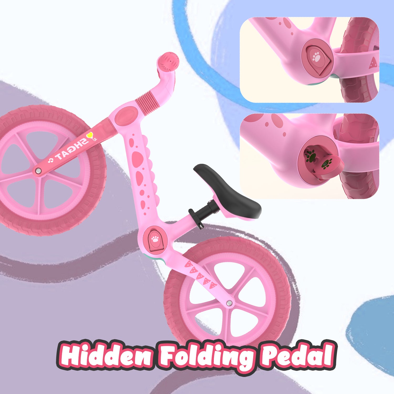 JoyStone Balance Bike Toys for Toddlers 18+ Months, Dinosaur Balance Bike with Adjustable Handlebar and Seat, No Pedals Bike Gift for Kids, Pink