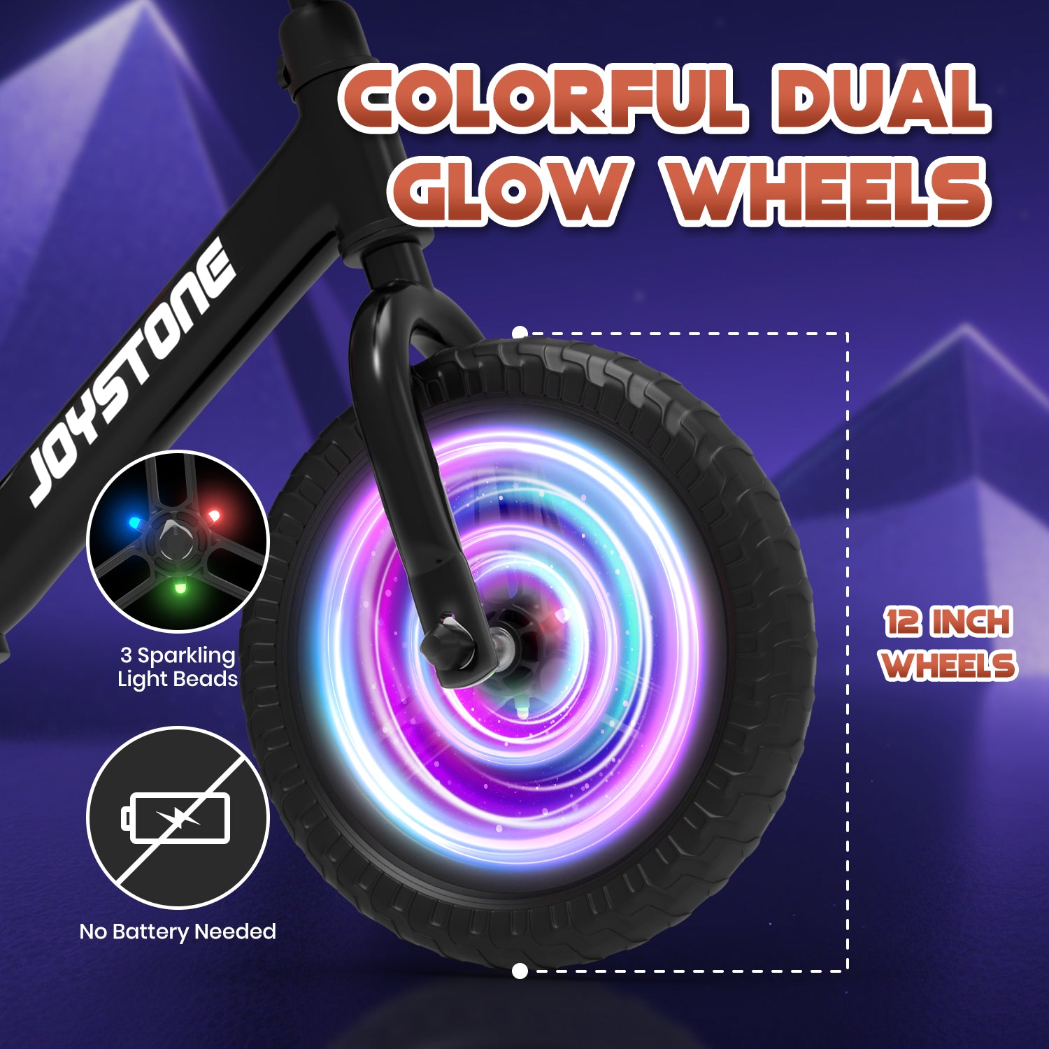 JoyStone Colorful Lighting 12 Inch Toddler Balance Bike Toys for 1-3 Years Old Boys Girls, Kids Training Balance Bike with Adjustable Handlebar and Seat, No Pedals Bike Gift for Kids, Black