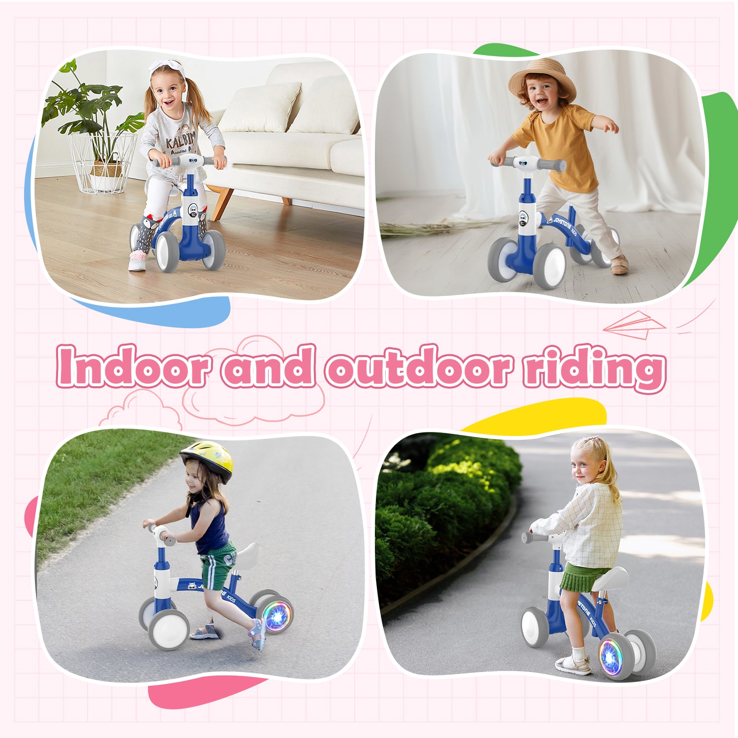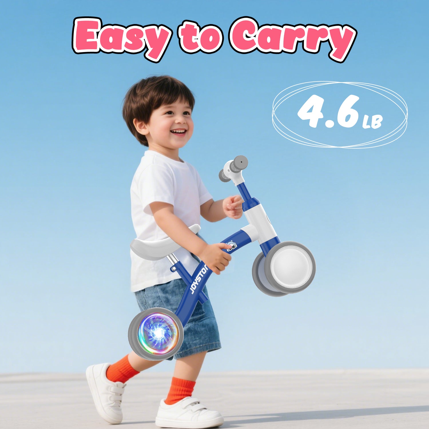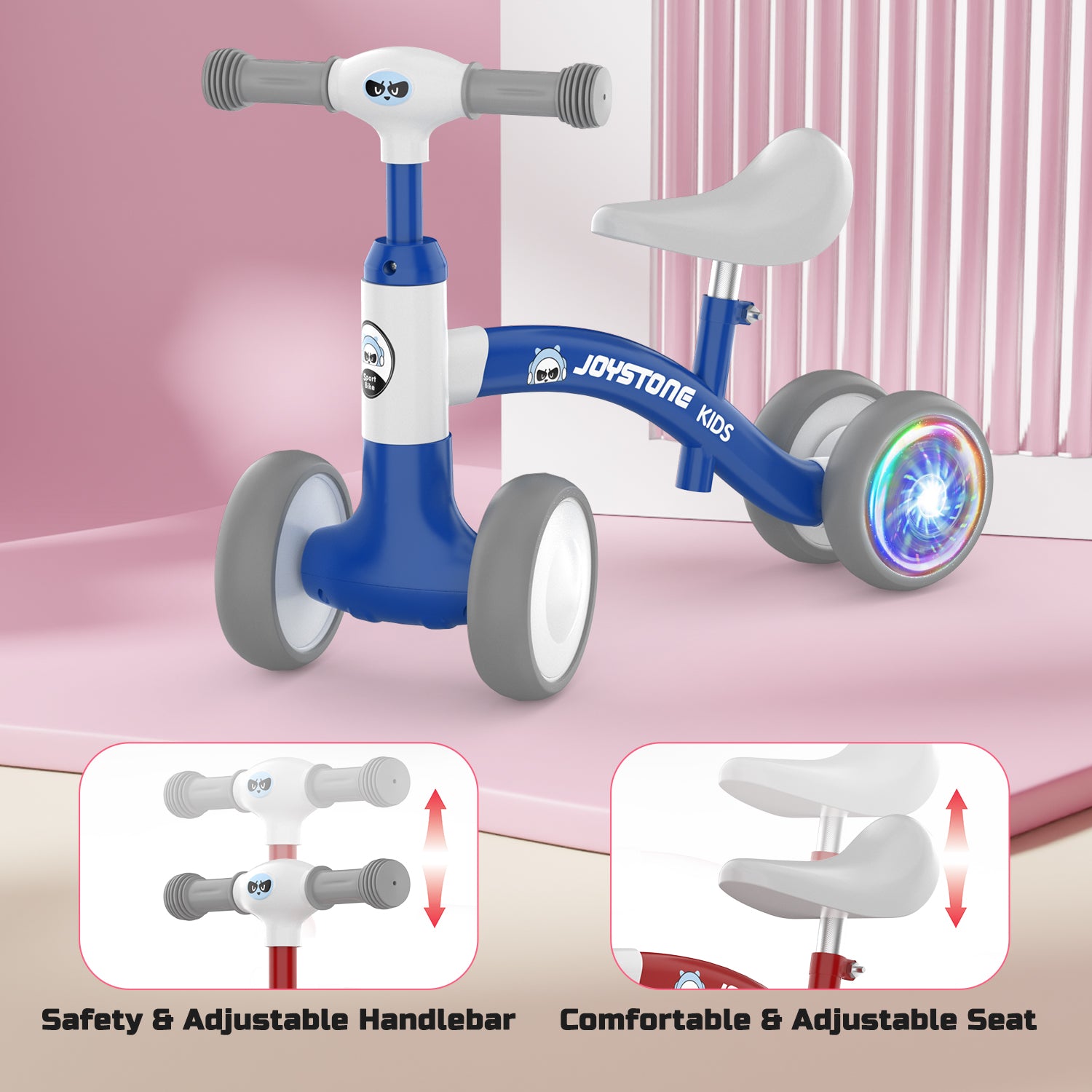 JoyStone Colorful Lighting Baby Balance Bike, No Pedal 4 Silence Wheels & Soft Seat, Adjustable Handlebar Seat, Toys for 1 Year Old Boy Girls Gifts, Blue