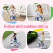 - 【Safe and Stable Design】 No pedal, no sharp part, safer for your baby, fully widened closed wheel to avoid clamping baby's feet. 135° steering limited to protect the baby from side falling when sliding.EVA silent, anti-slip wheels protect floors and handle all surfaces, indoors and outdoors.