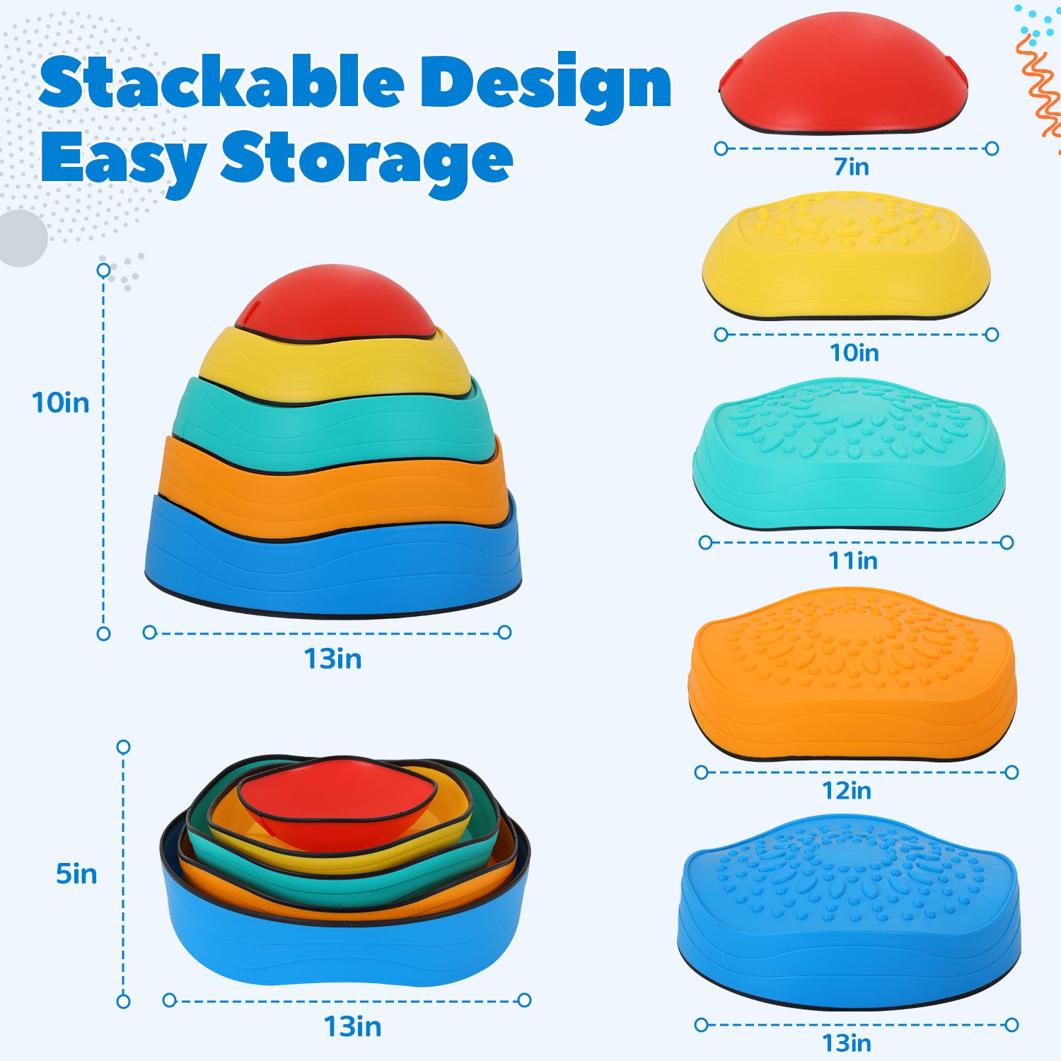 - 【5-Piece Stepping Stones for Kids】The stepping stone kit includes 5 toddler stepping stones. , these outdoor stepping stones kids can be stacked, placed, or used as seating and storage, ensuring that your child's playtime is limitless and easily accessible wherever you go.