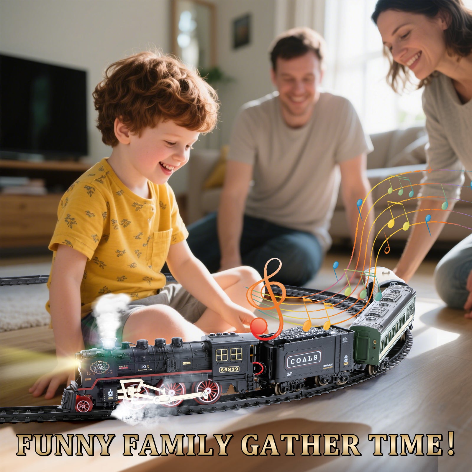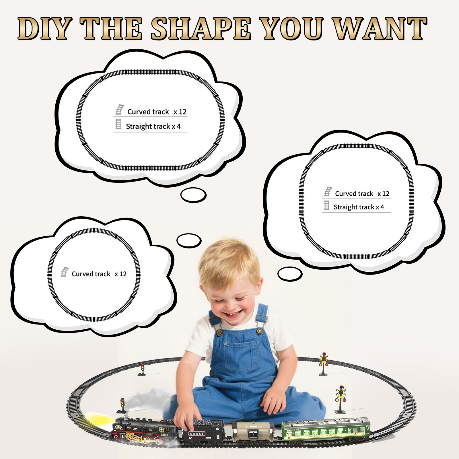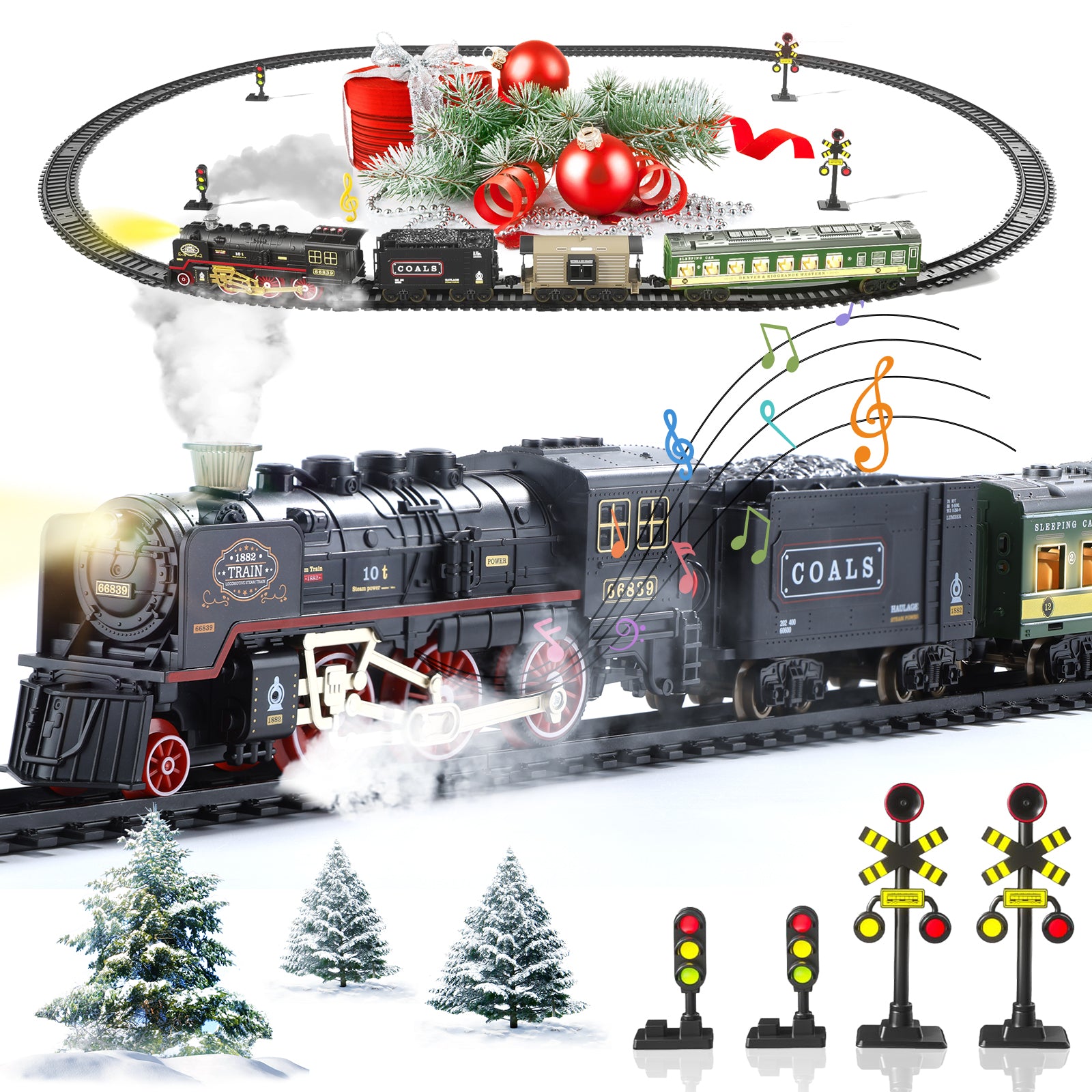 JoyStone Electric R/C Train Set Toys for Boys with Smokes, Lights & Sound, Tracks, Toddler Model Train Set with Steam Locomotive Engine & Cargo Cars and Tracks, Christmas Toy Train for Kids