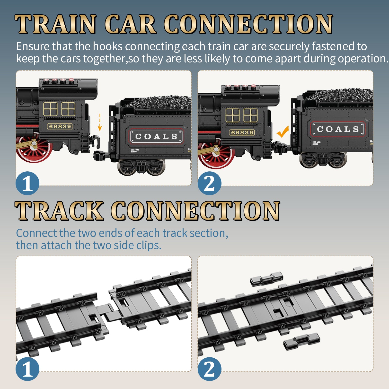 This is an interactive game toy. kids can play with their parents or friends. Under the vivid "Choo-Choo" sound and train lights, they can lead the children to experience the real retro train era. We also provide two different types of straight and curved tracks, children can DIY to create a creative and interesting game environment, which will stimulate unlimited imagination and hands-on ability, keep kids away from electronic products.