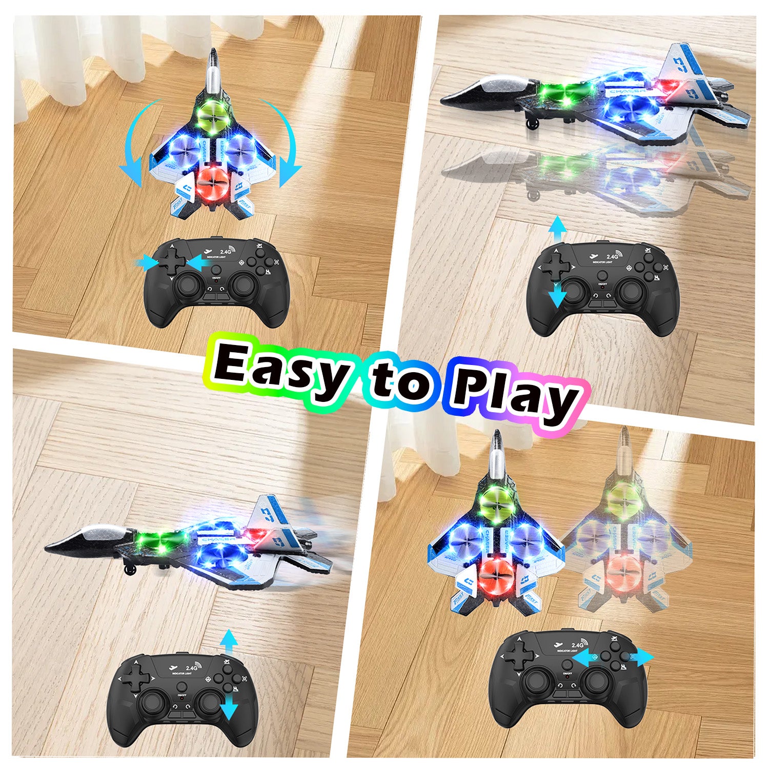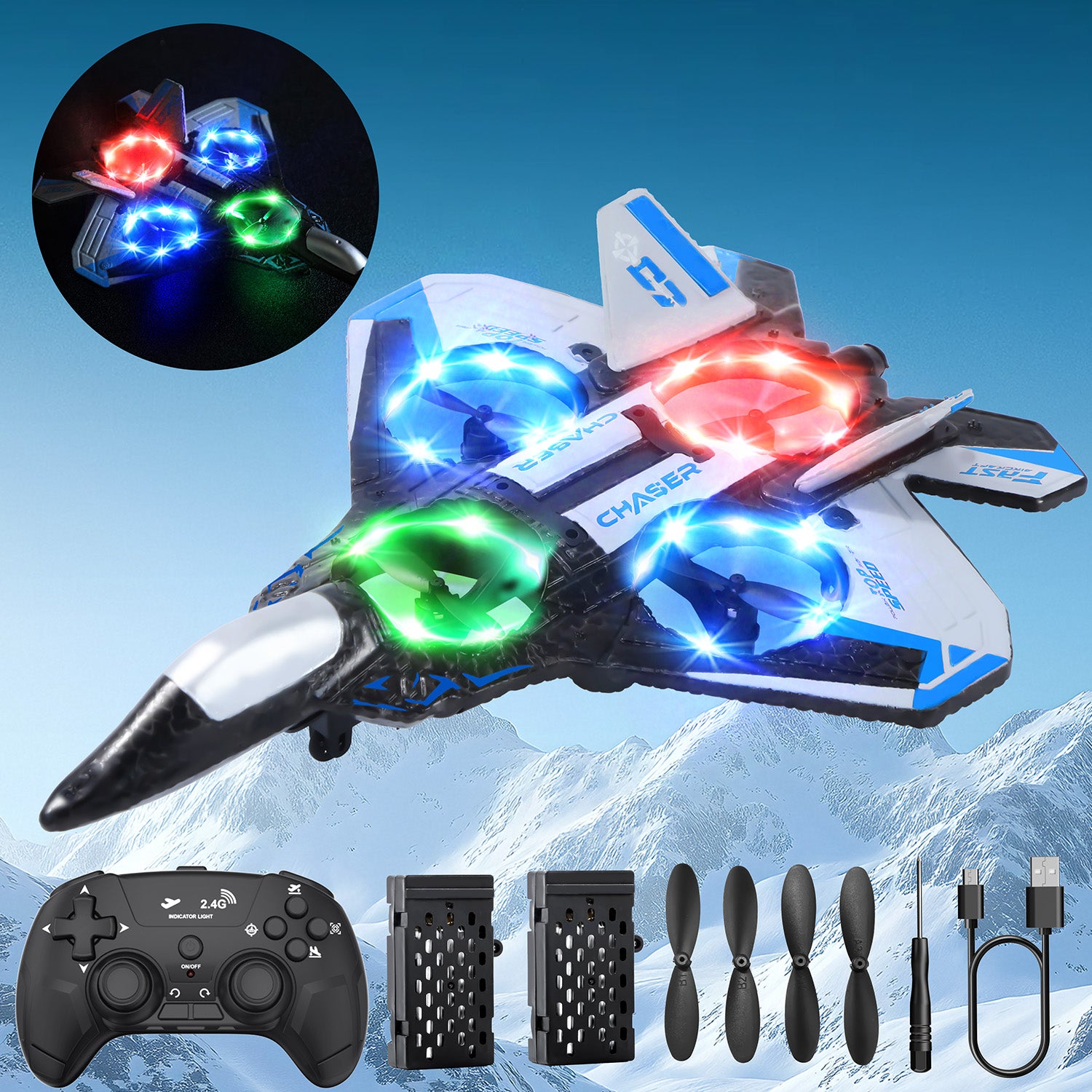 - Cool LED Lights - The remote-controlled airplane is equipped with built-in LED lights, making it perfect for night flights. The dazzling lights add fun and excitement to the flight experience of the remote-controlled drone, creating an unforgettable flight performance.