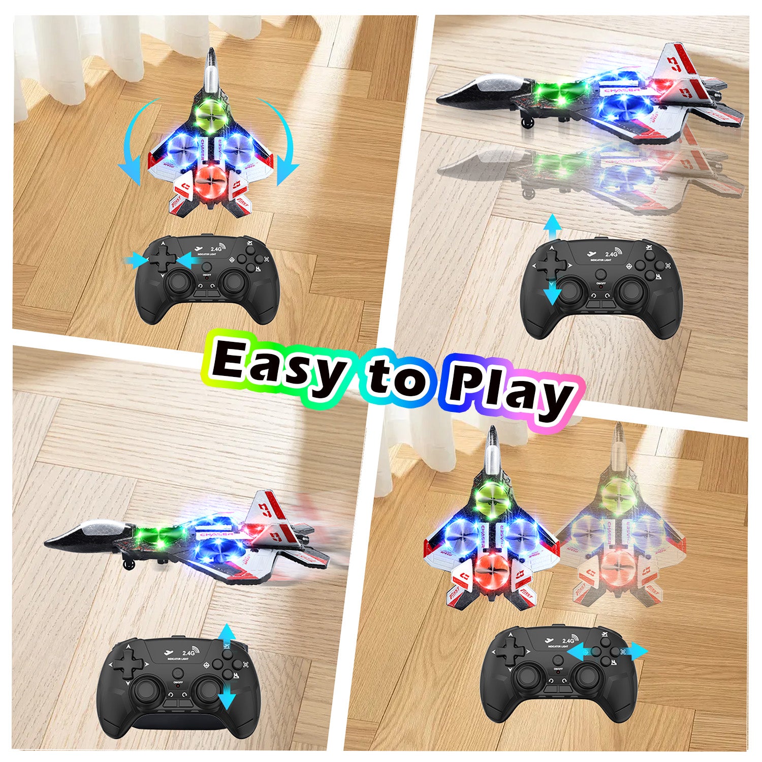 JoyStone Foam Remote Control Airplane, Jet Fighter RC Plane Stunt Drone Toy with LED Lights & 360° Spin, Easy to Fly RC Glider for Kids Adults, Red