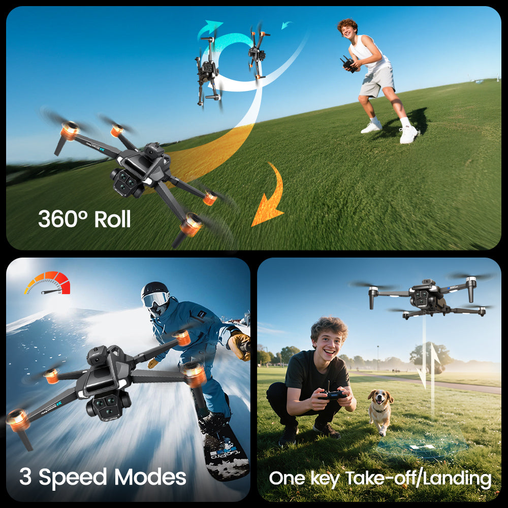 - 【Super Easy for Beginners】This FPV drone comes with One Key Take-off/Landing, Altitude Hold, Headless Mode, 3 Speed Modes and intelligent obstacle avoidance, make it extremely friendly for kids and beginners. Foldable body make the drone small and portable.