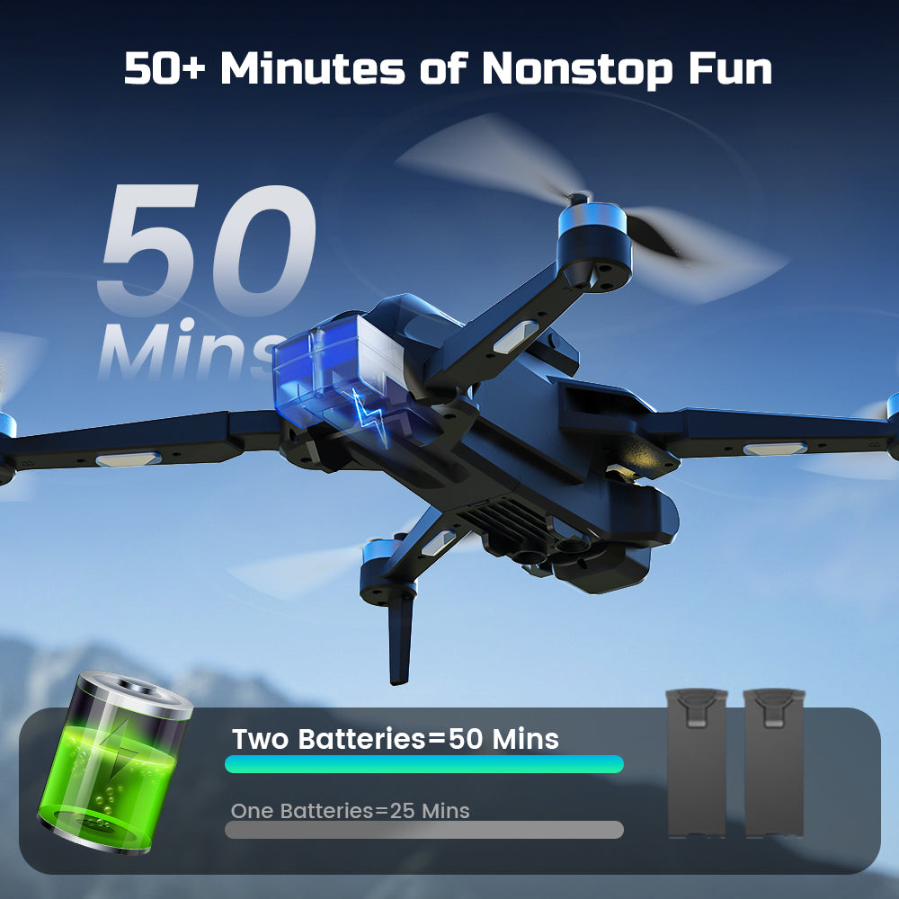 - 【Dual 3000mAh Batteries – 50+ Minutes of Nonstop Fun】With 2 rechargeable batteries which extends the flight time to 50 minutes, providing a worry-free flying experience. The modular batteries are easy to charge and replace, the remote controller emits a low battery warning, ensuring beginners never lose their drone.
