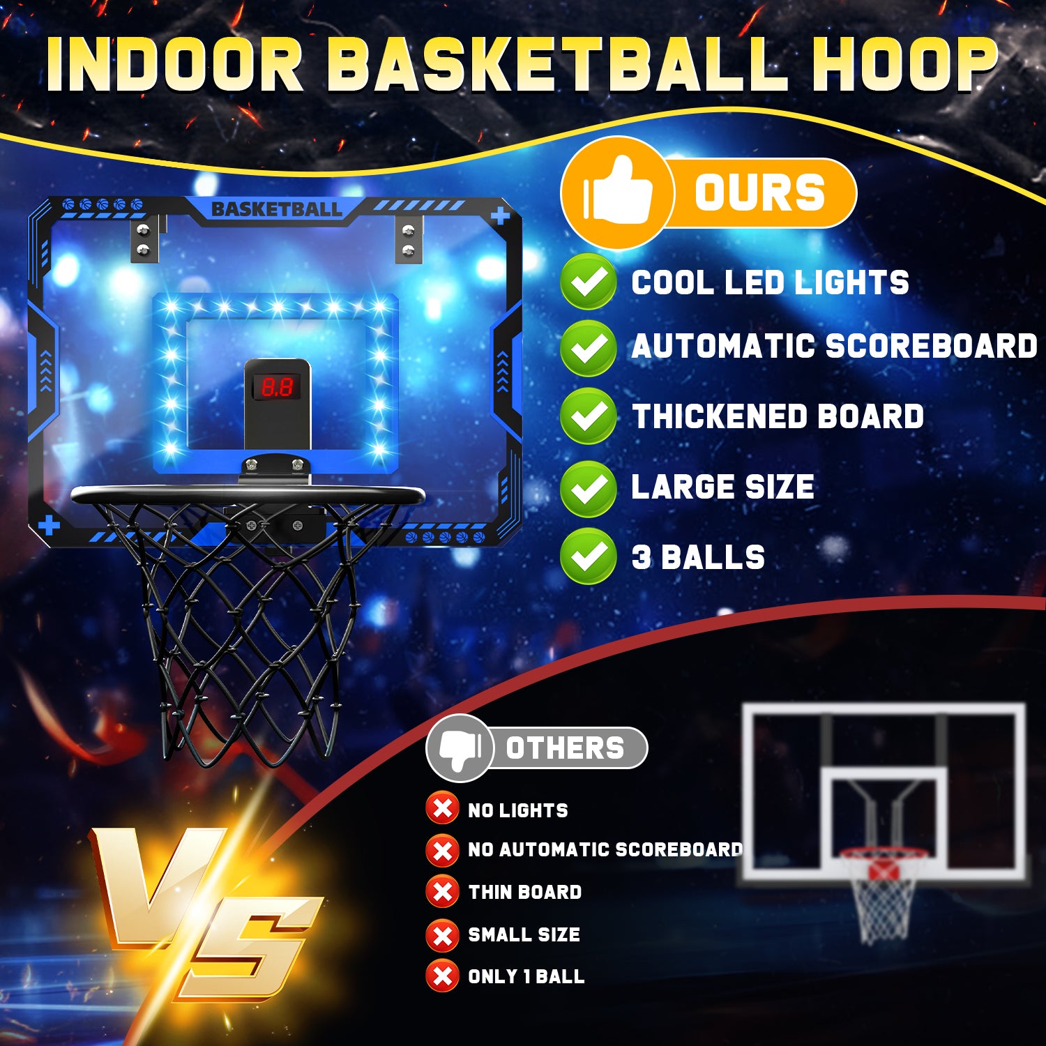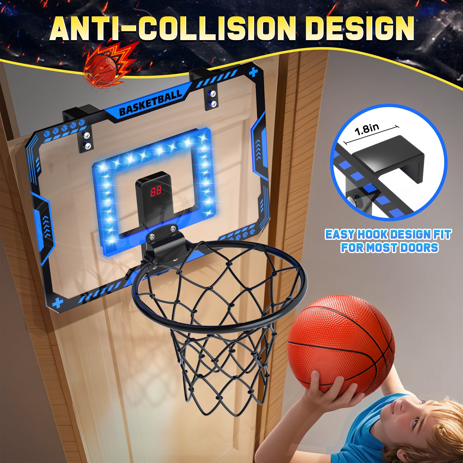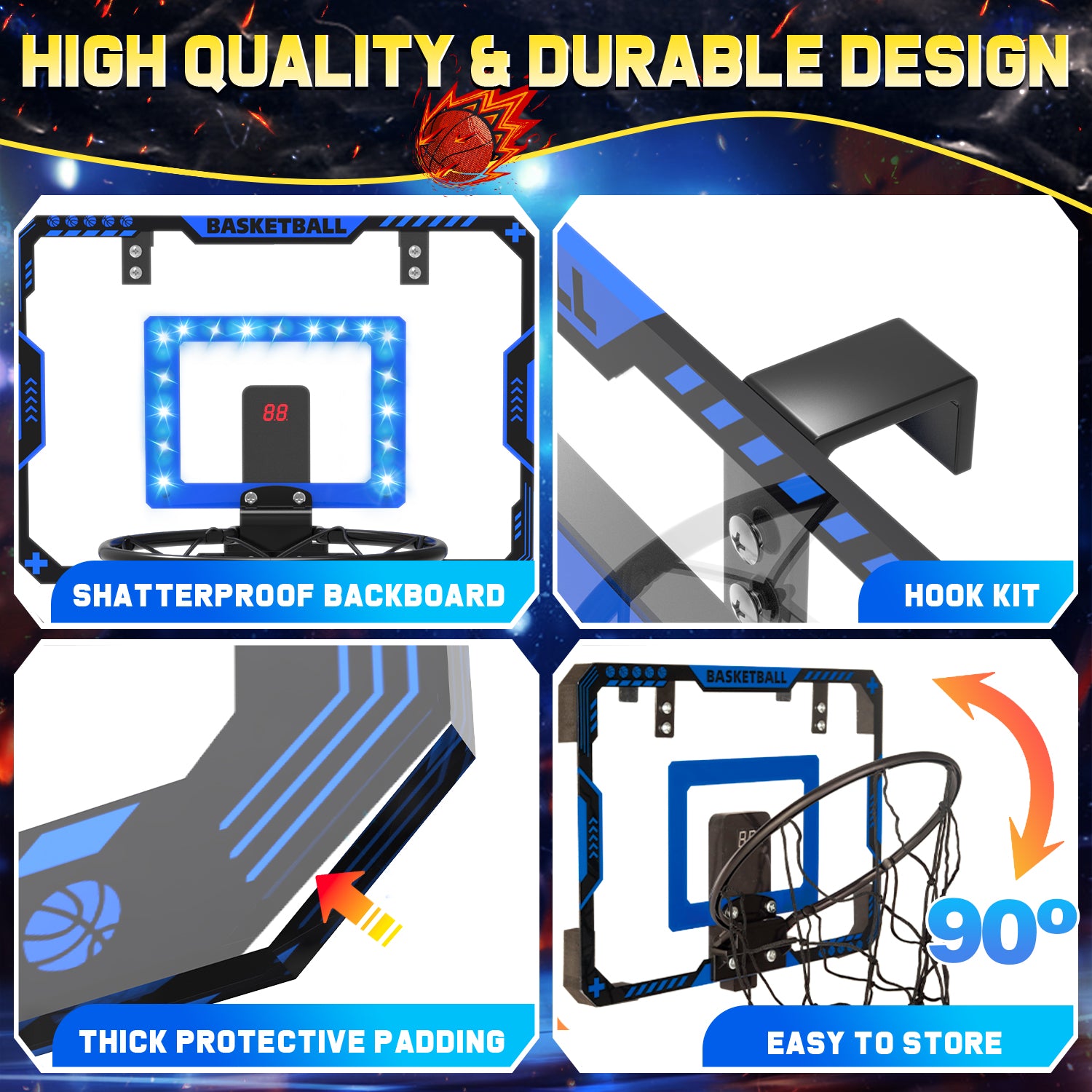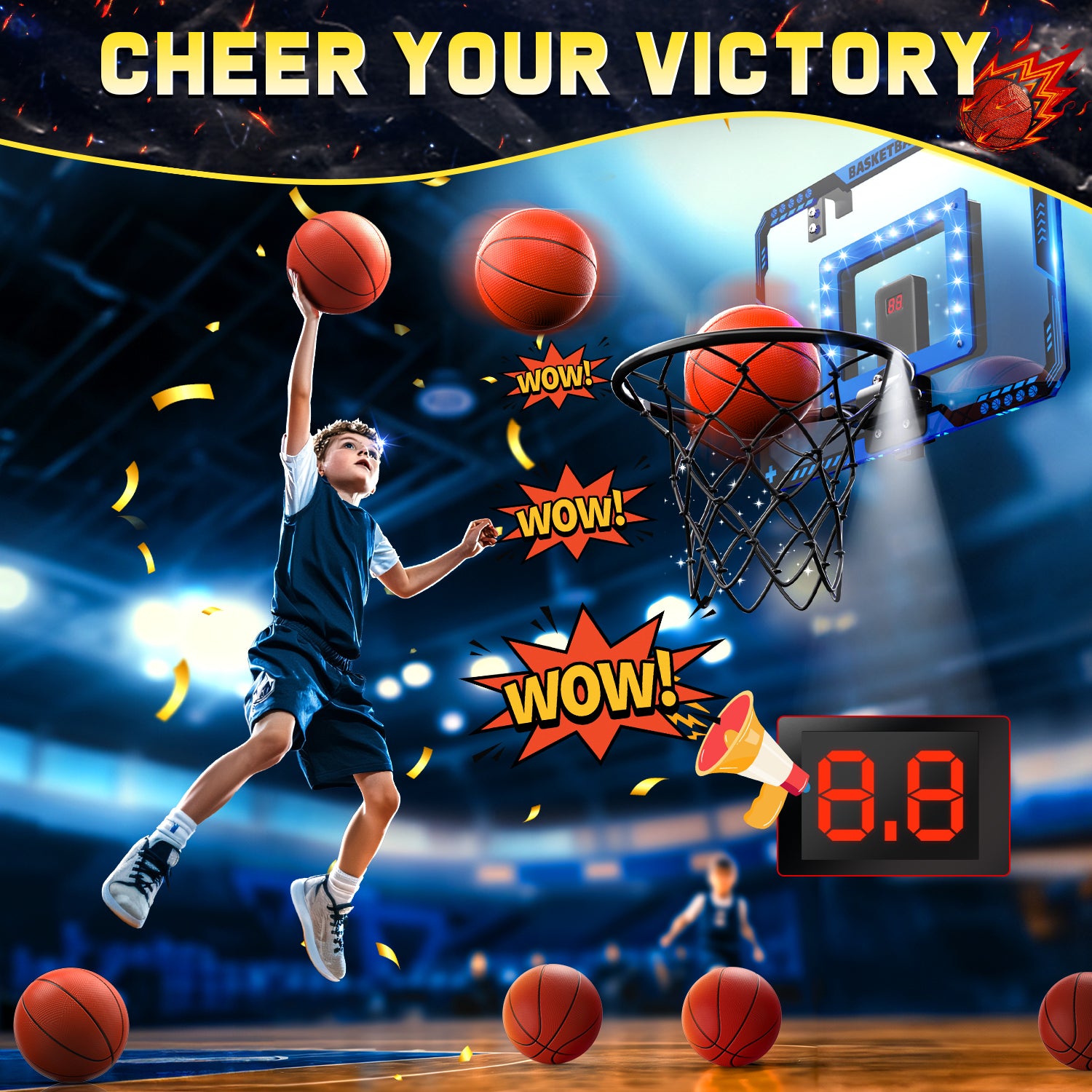 JoyStone Indoor Basketball Hoop for Kids, Mini Basketball Hoop with Electronic Scoreboard and Sounds, Over The Door Basketball Hoop 4 Balls for Kids & Adults