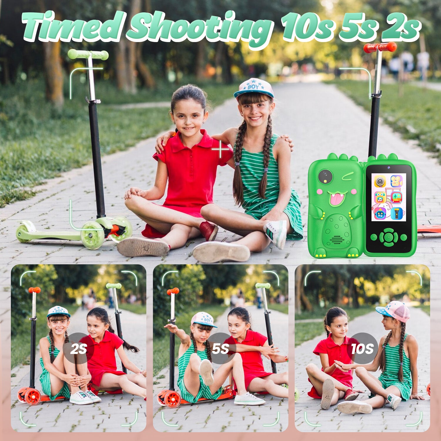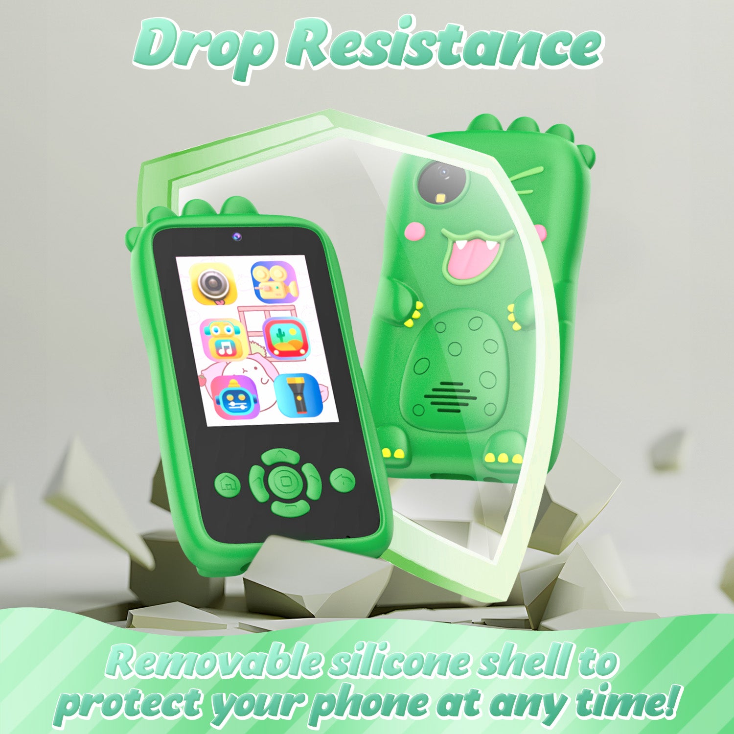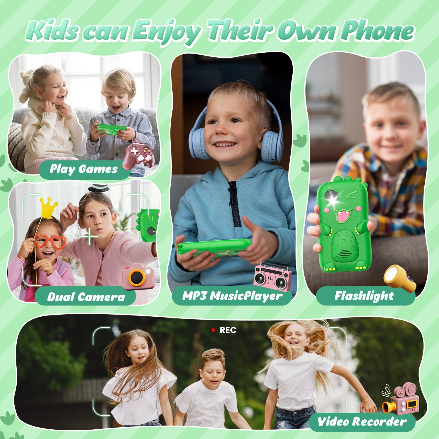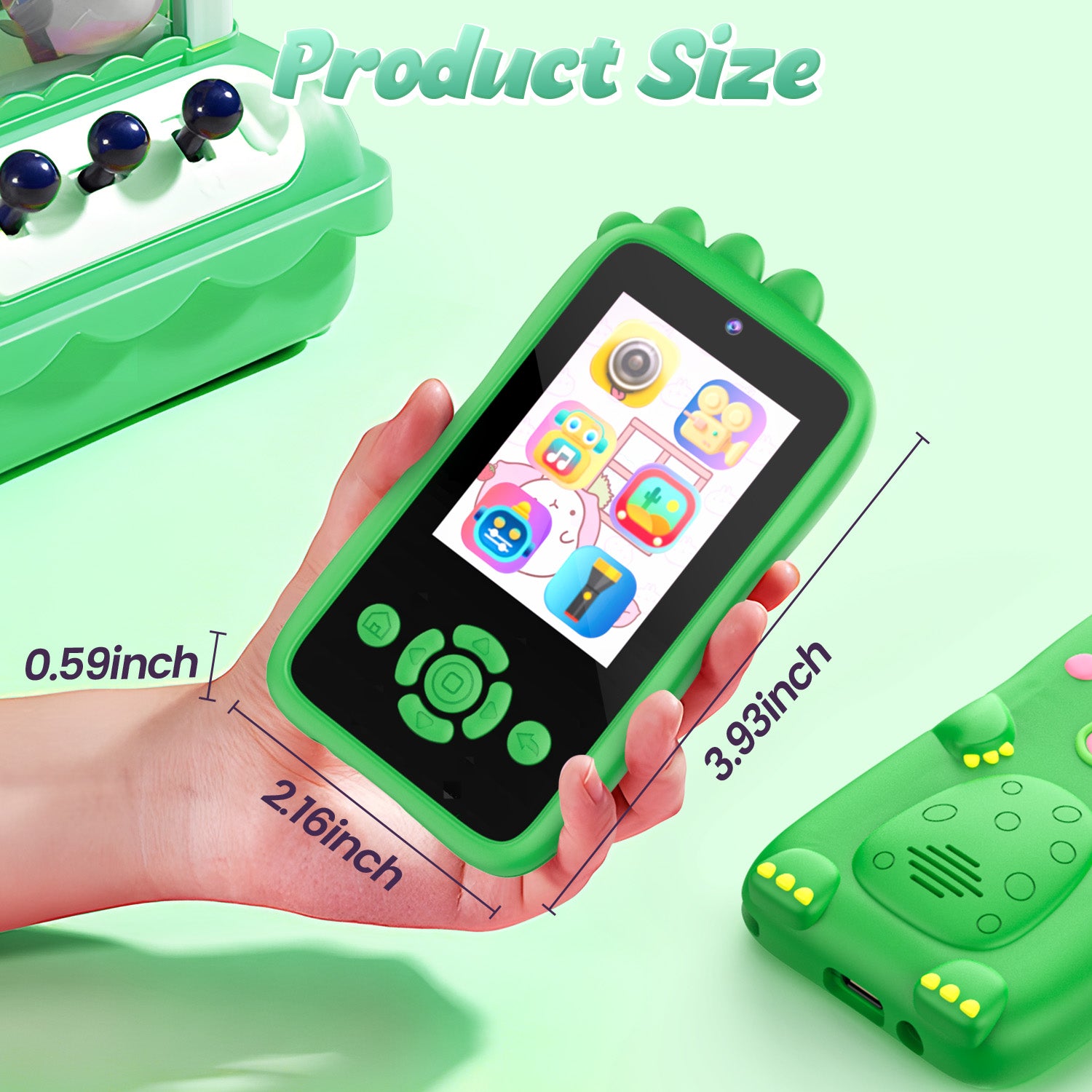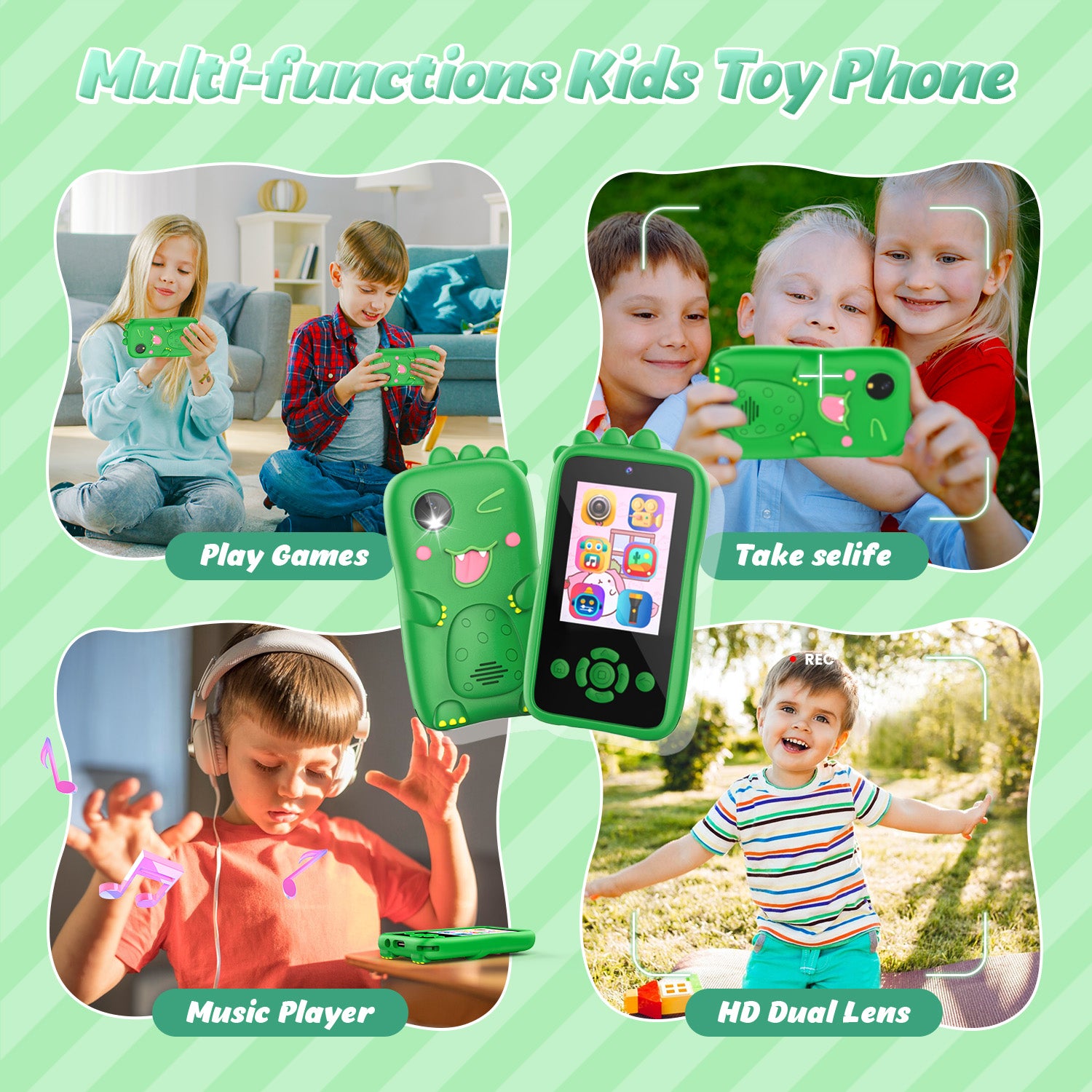 JoyStone Kids Dinosaur Button Smart Phone Toys for Kids, Play Toy Phone with Music Player Dual Camera Puzzle Games, Toddler Learning Toys for 3-8 Year Old, Birthday, Kids Trip Activities, Green