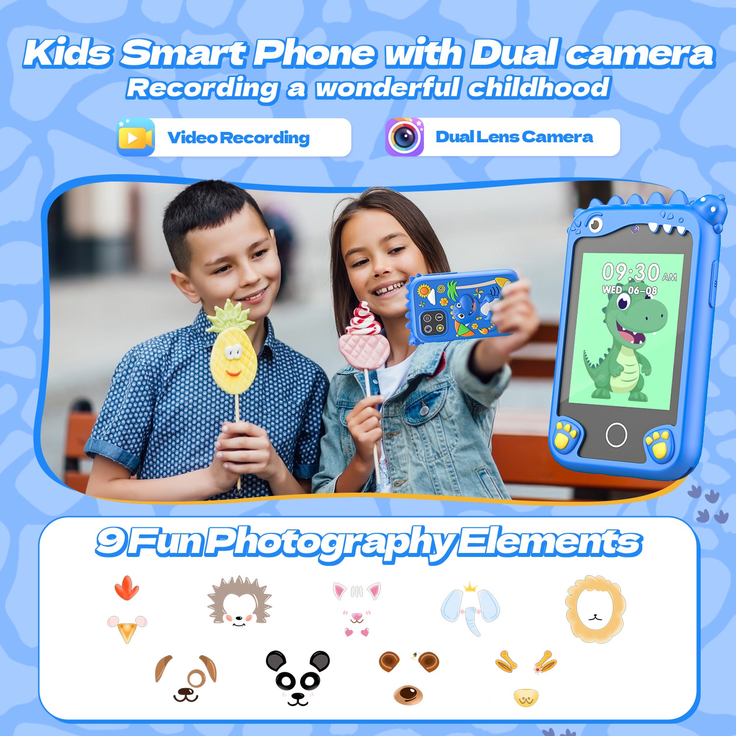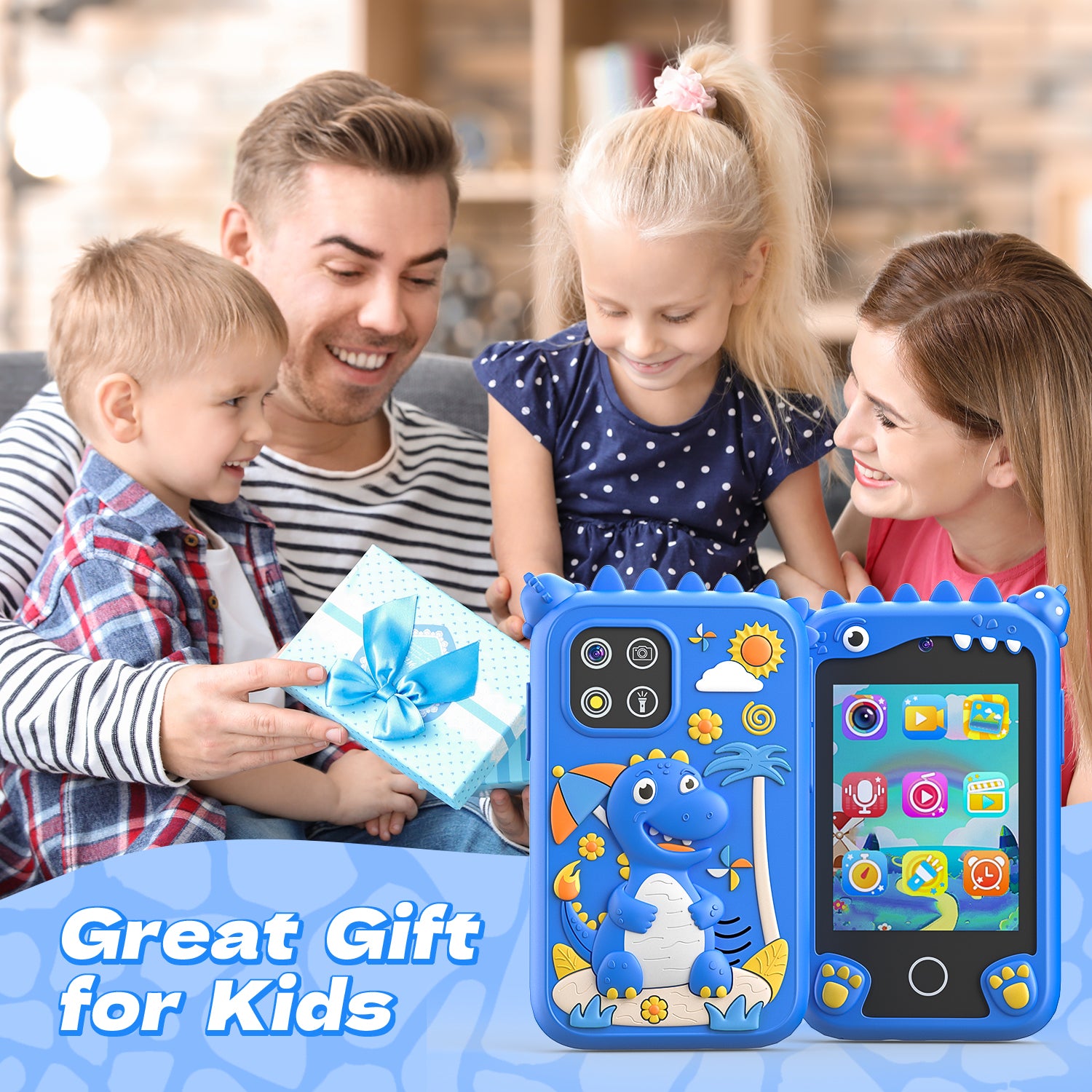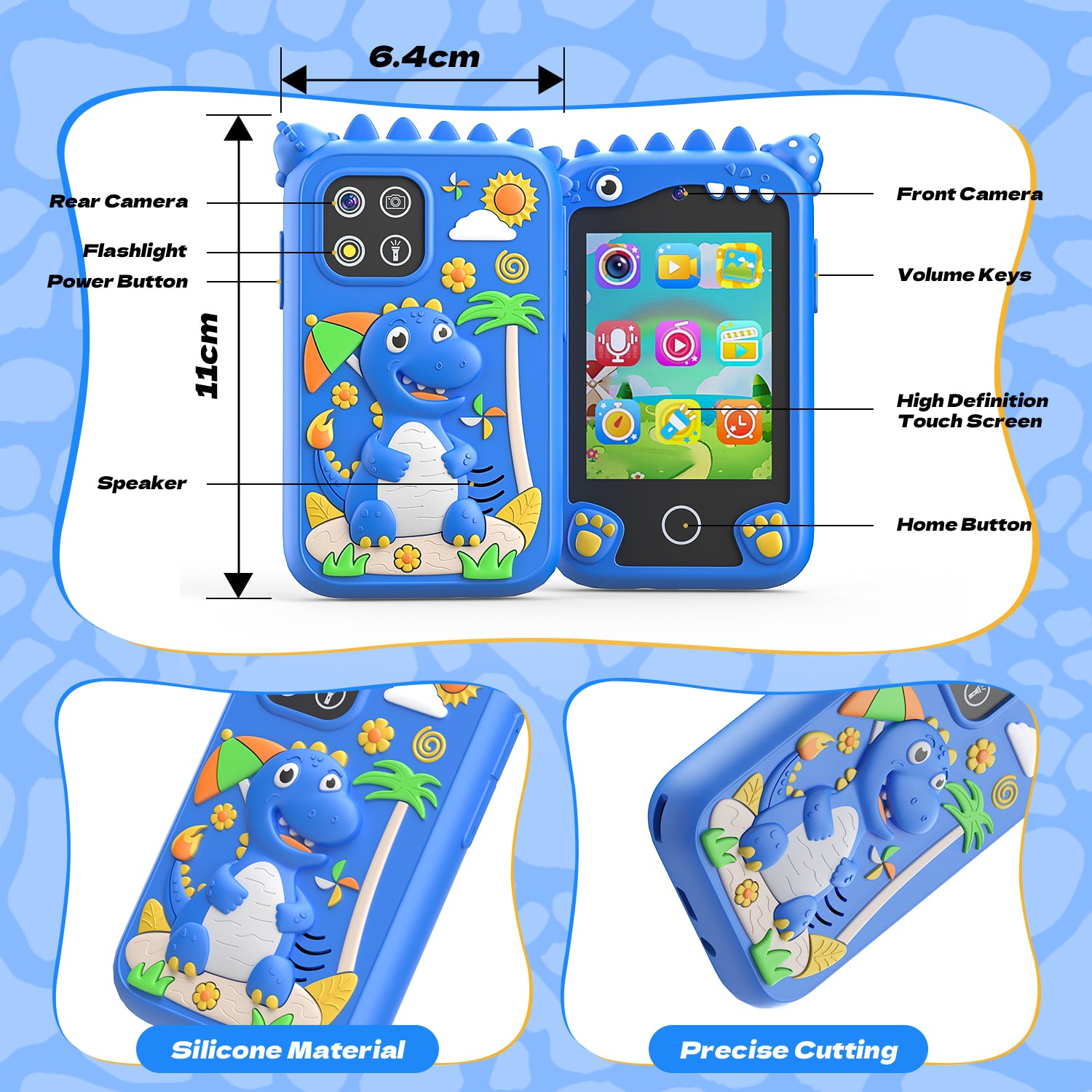 JoyStone Kids Dinosaur Smart Phone, 2.8" Touchscreen Toddler Learning Play Toy Phone with Dual Camera, Game, Music Player, Learning Toy Christmas Birthday Gifts for 3-9 Year Old Kids, Blue