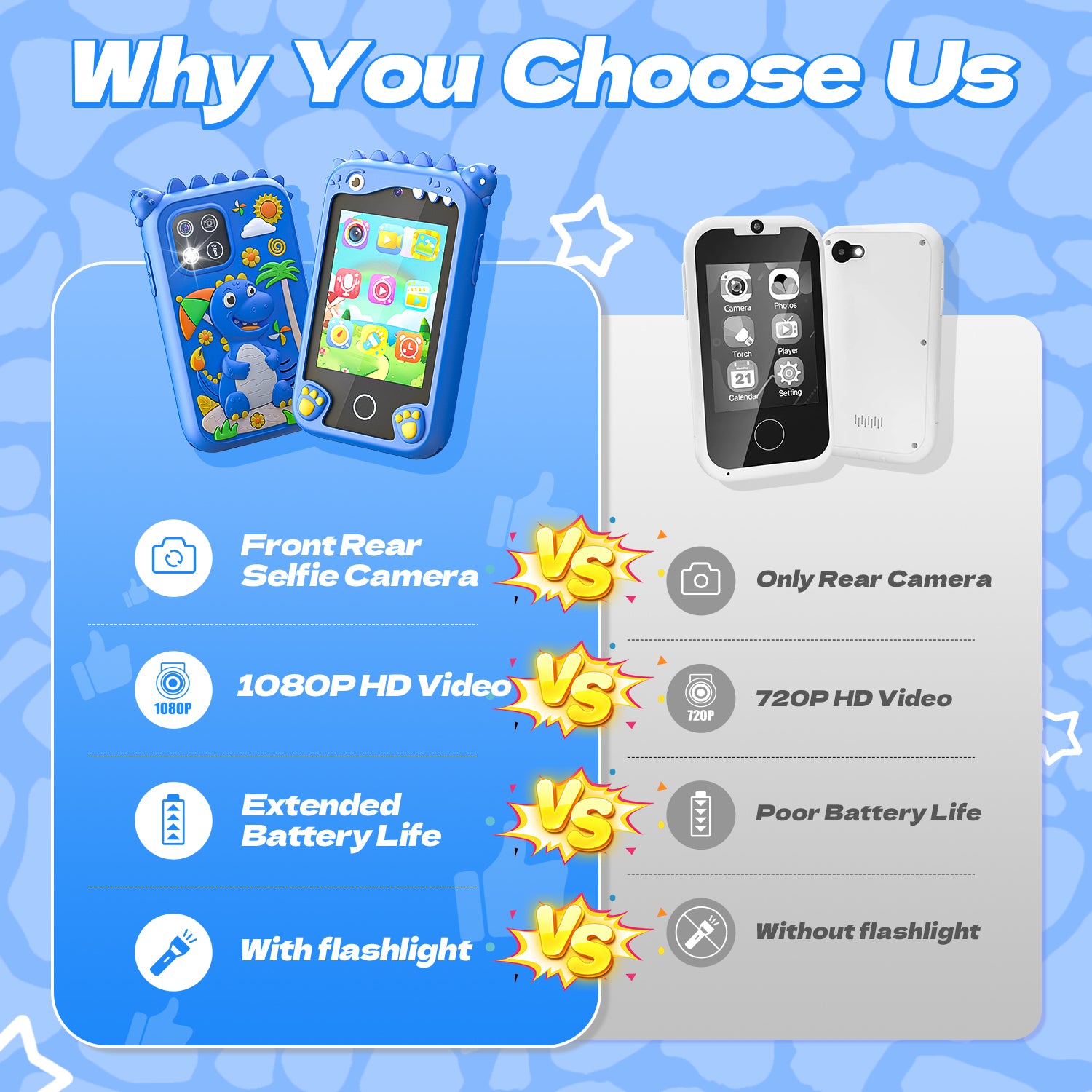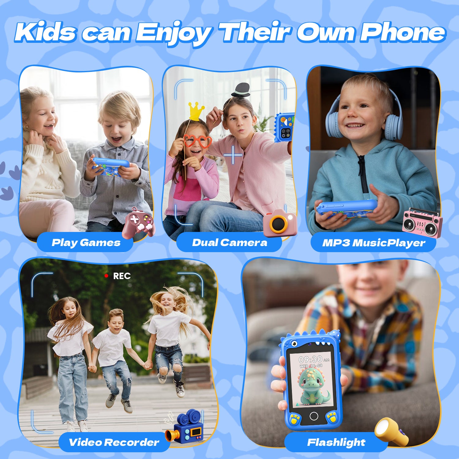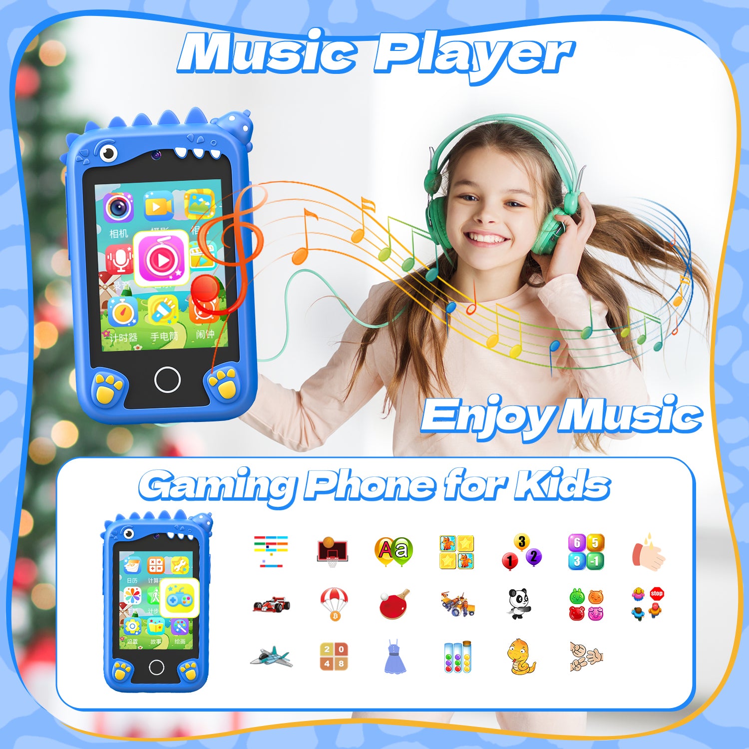 JoyStone Kids Dinosaur Smart Phone, 2.8" Touchscreen Toddler Learning Play Toy Phone with Dual Camera, Game, Music Player, Learning Toy Christmas Birthday Gifts for 3-9 Year Old Kids, Blue