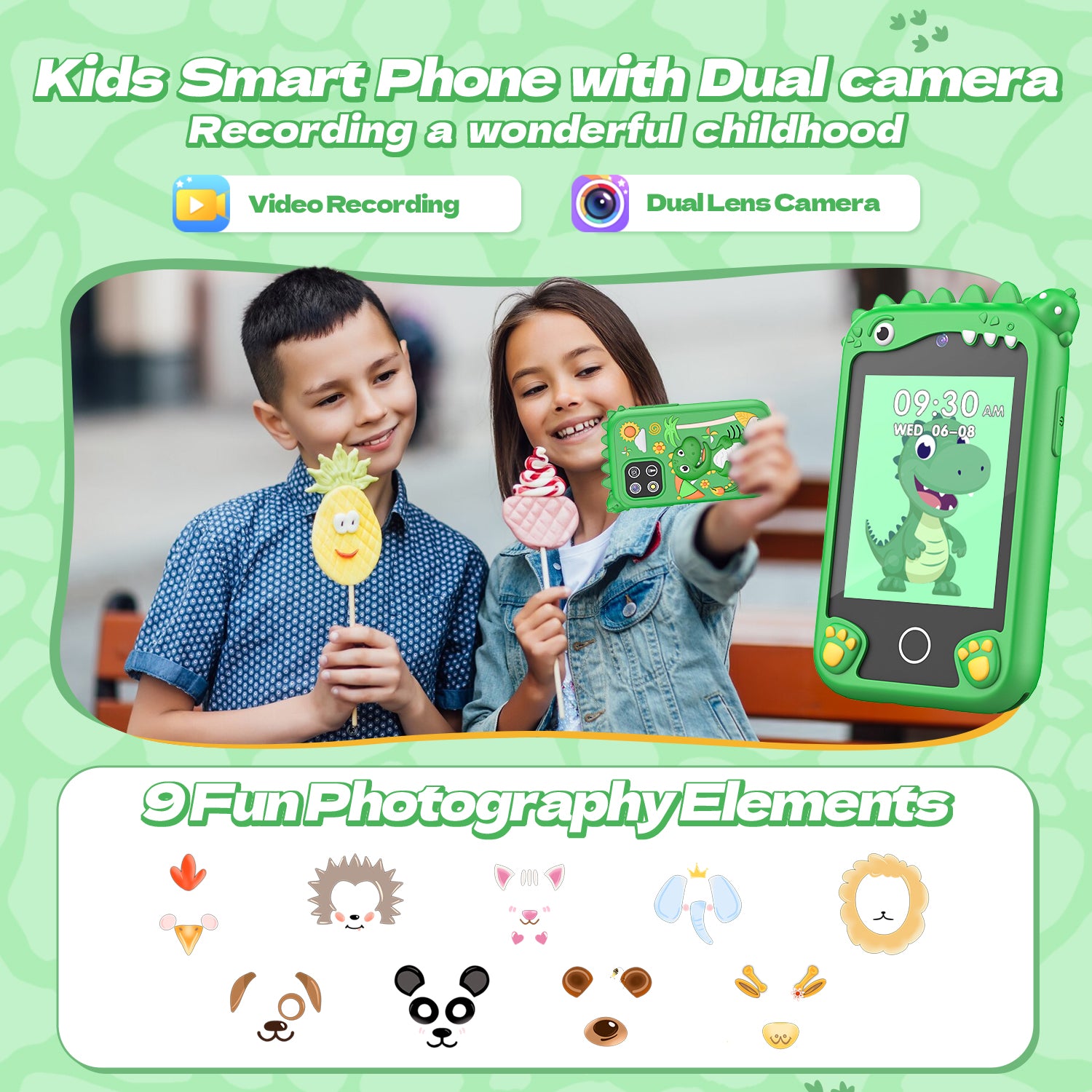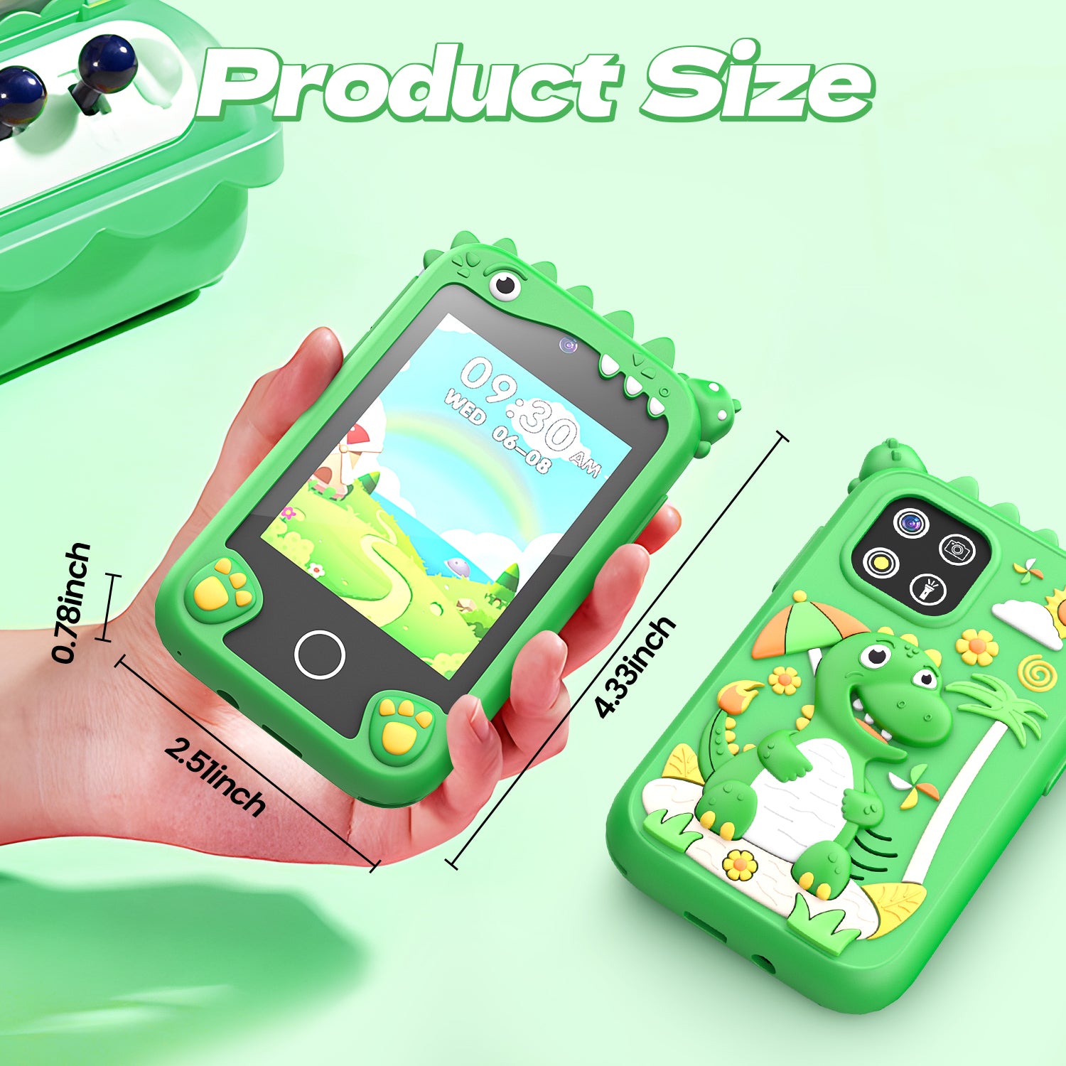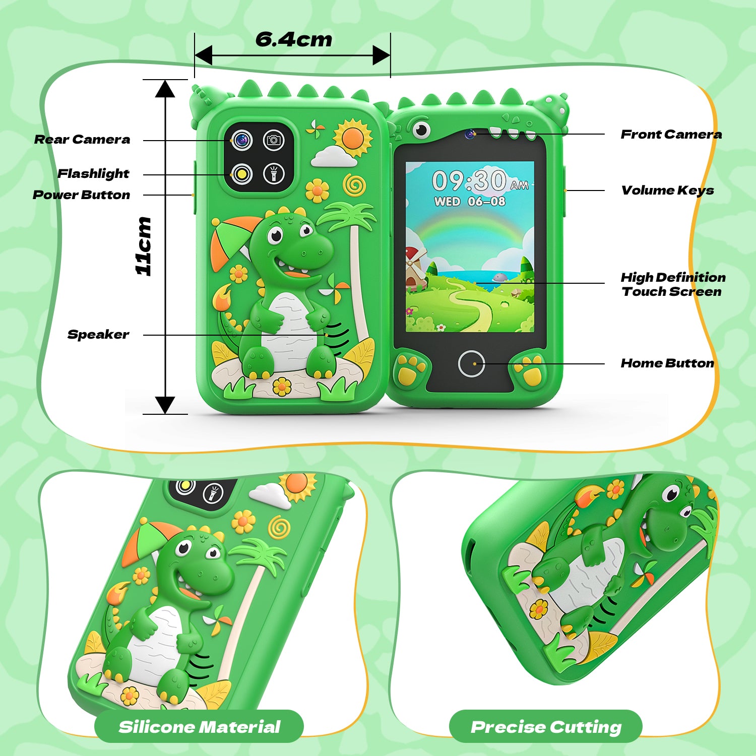 JoyStone Kids Dinosaur Smart Phone, 2.8" Touchscreen Toddler Learning Play Toy Phone with Dual Camera, Game, Music Player, Learning Toy Christmas Birthday Gifts for 3-9 Year Old Kids, Green