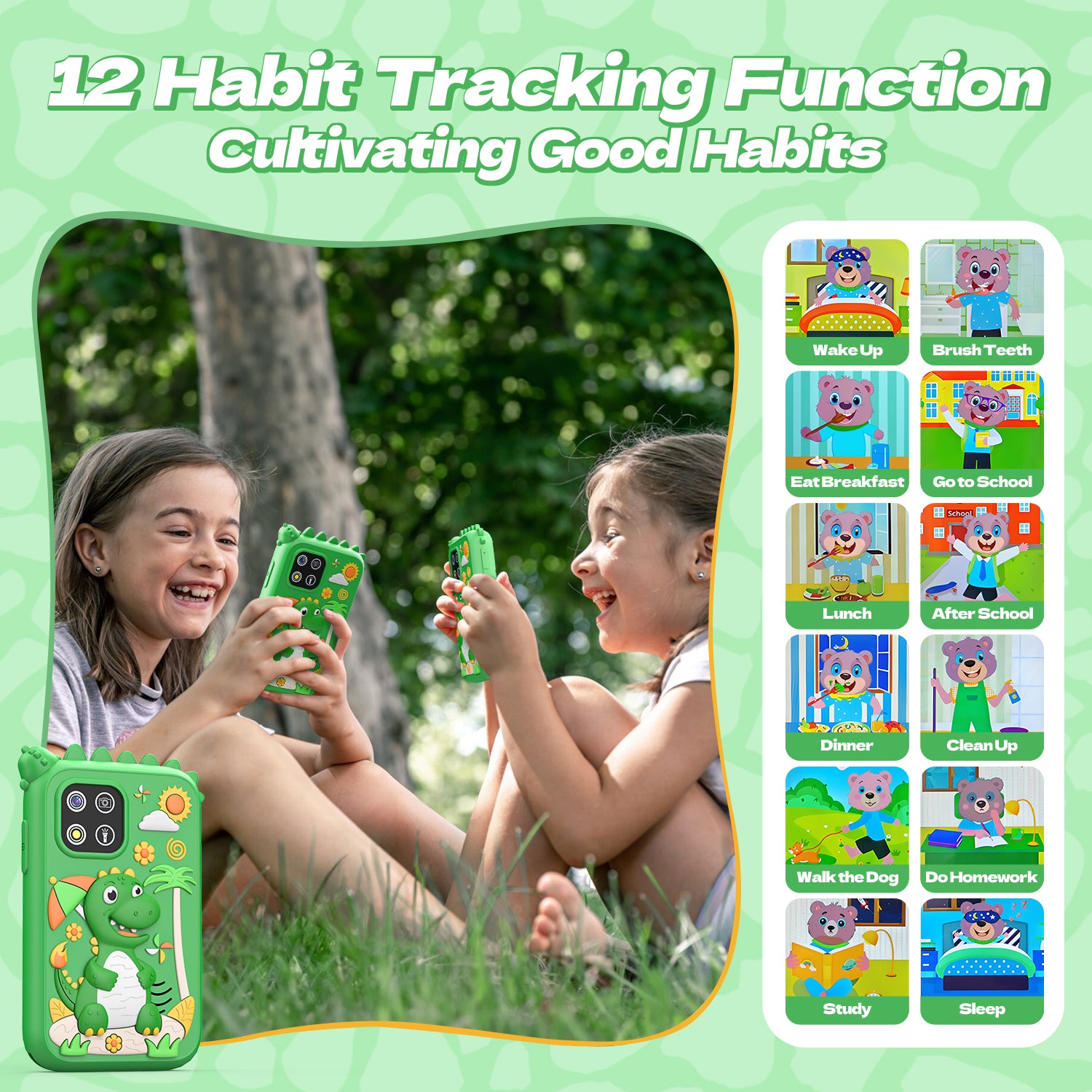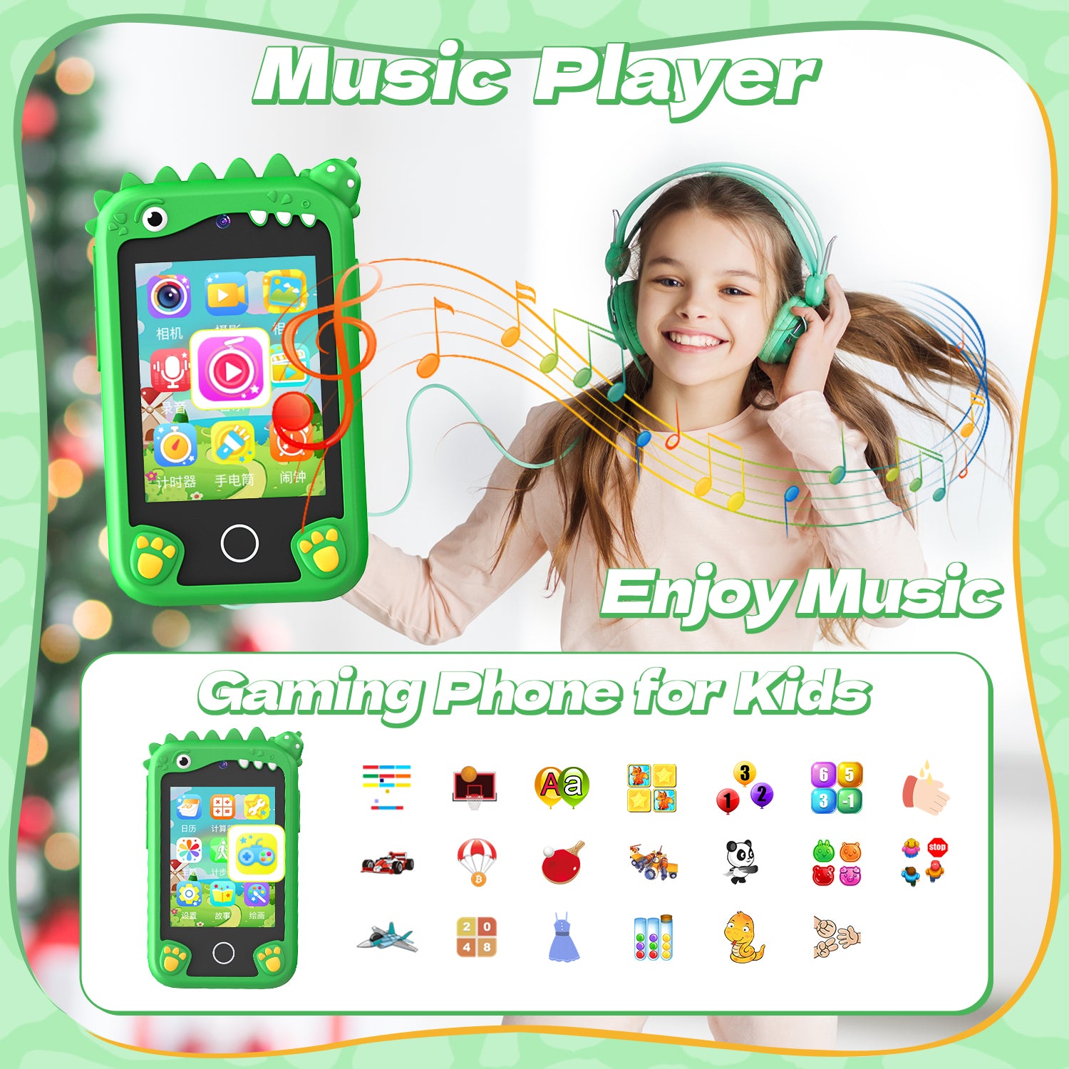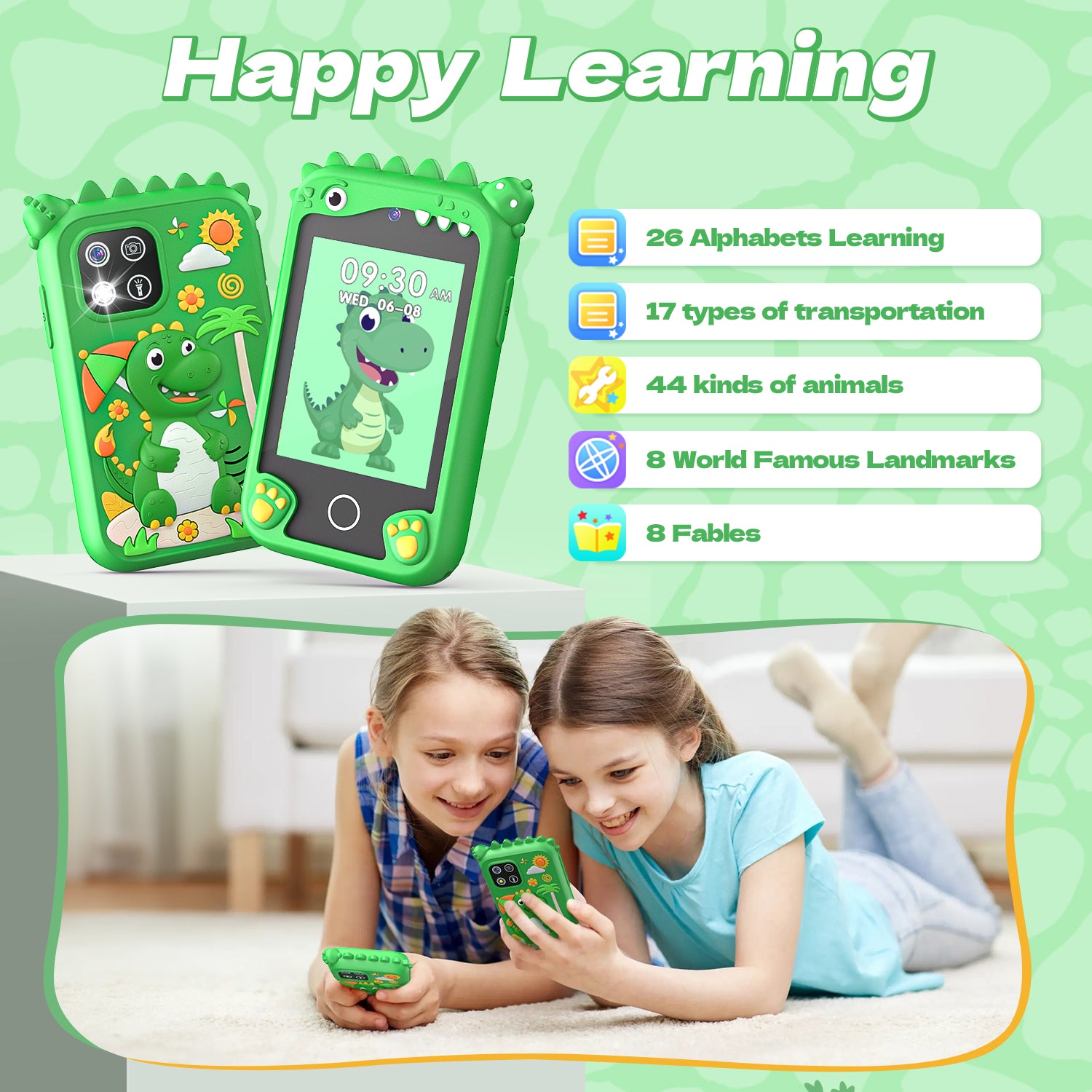 JoyStone Kids Dinosaur Smart Phone, 2.8" Touchscreen Toddler Learning Play Toy Phone with Dual Camera, Game, Music Player, Learning Toy Christmas Birthday Gifts for 3-9 Year Old Kids, Green