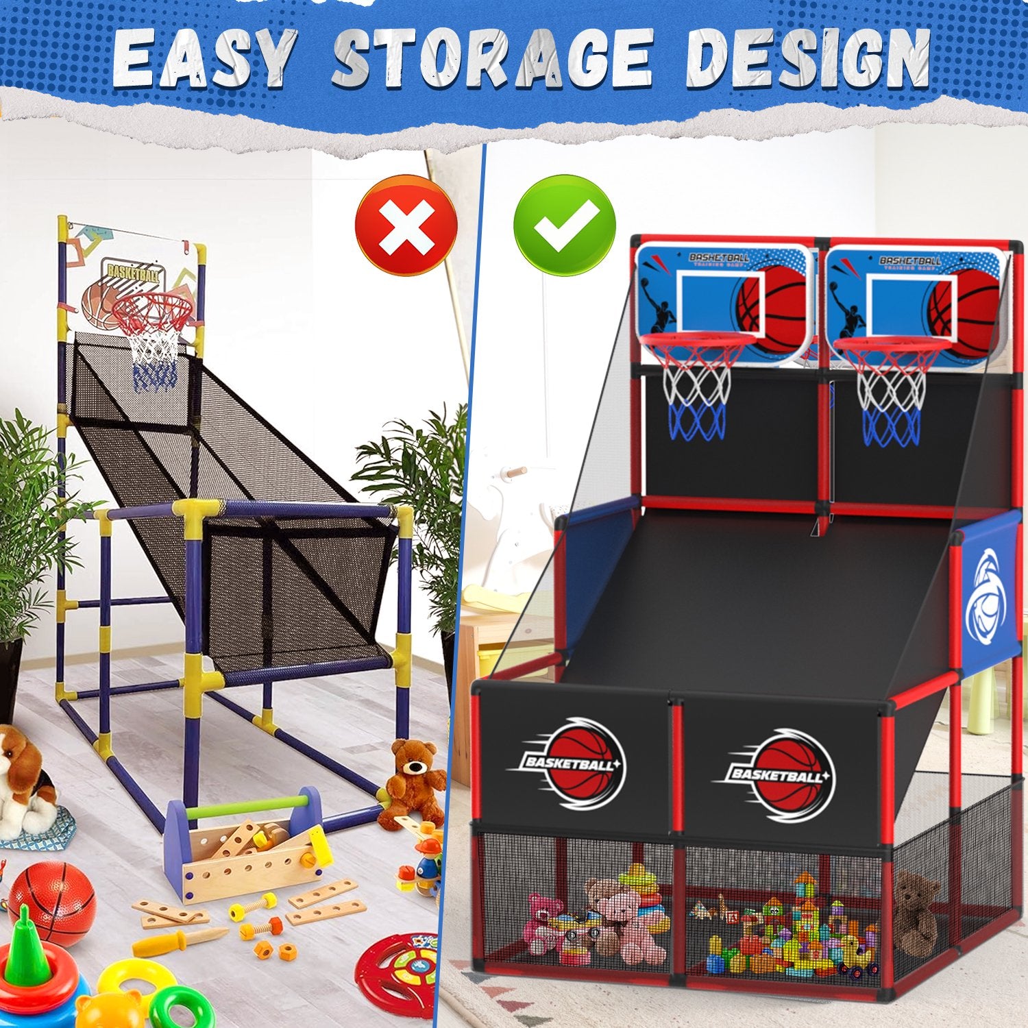 - 【Sturdy Material】Basketball toy use 100% safe and strong thickened tubes and connectors, make it more stronger and sturdy. We offers many high quality pipes to build this arcade indoor game stronger, higher, and more solid.