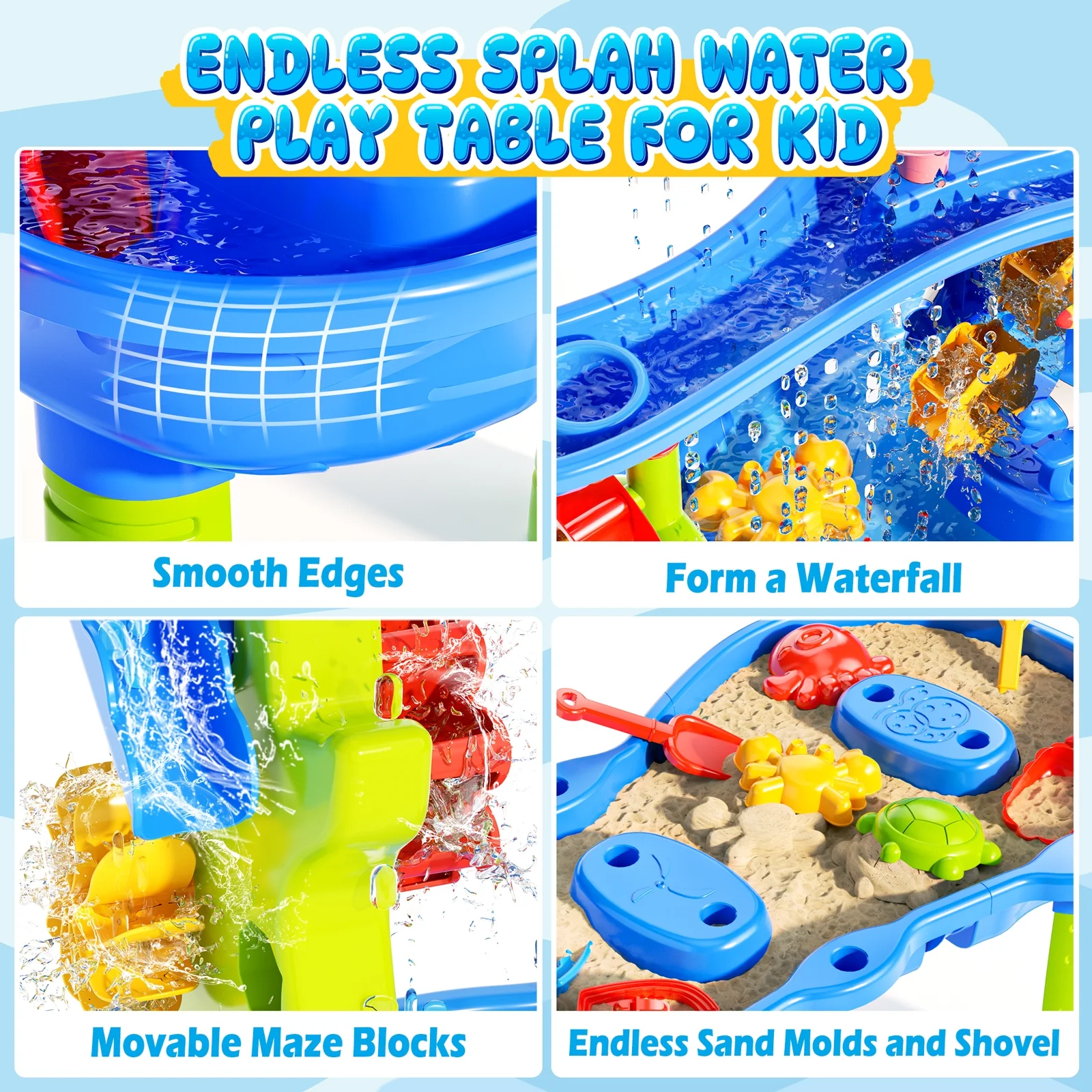 JoyStone Kids Sand Water Table for Beach, 4-Tier Water Activity Tables with Water Pump, Activity Sensory Play Table Toys for Toddlers, Summer Gift Toys for Outside Backyard for Kids