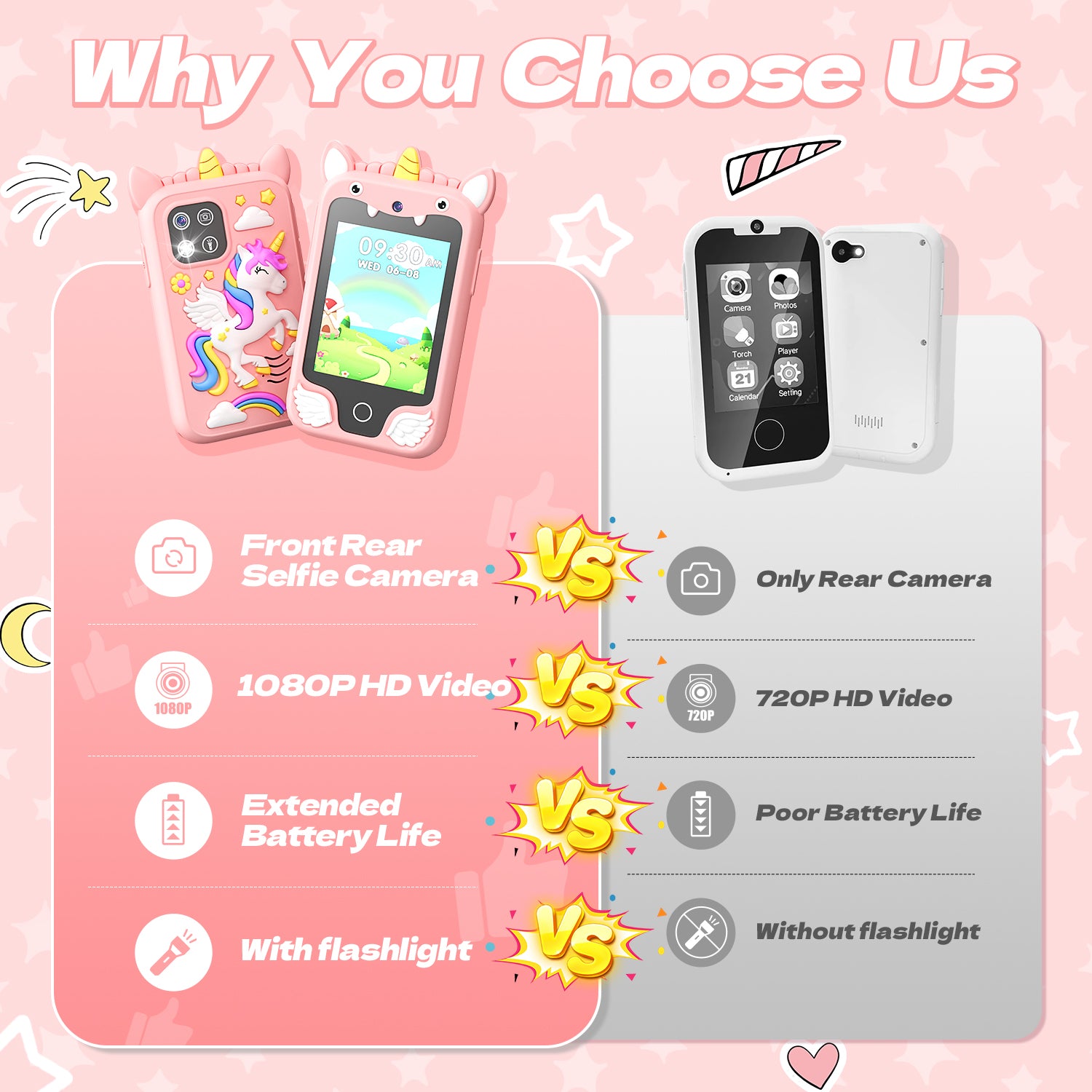 JoyStone Kids Smart Phone, 2.8" Touchscreen Toddler Learning Play Toy Phone with Dual Camera, Game, Music Player, Learning Toy Christmas Birthday Gifts for 3-9 Year Old Girls, Pink