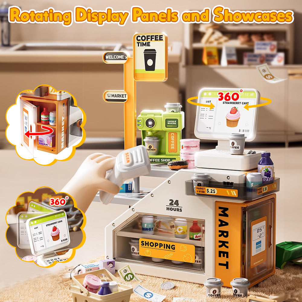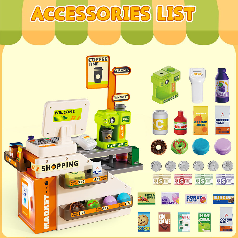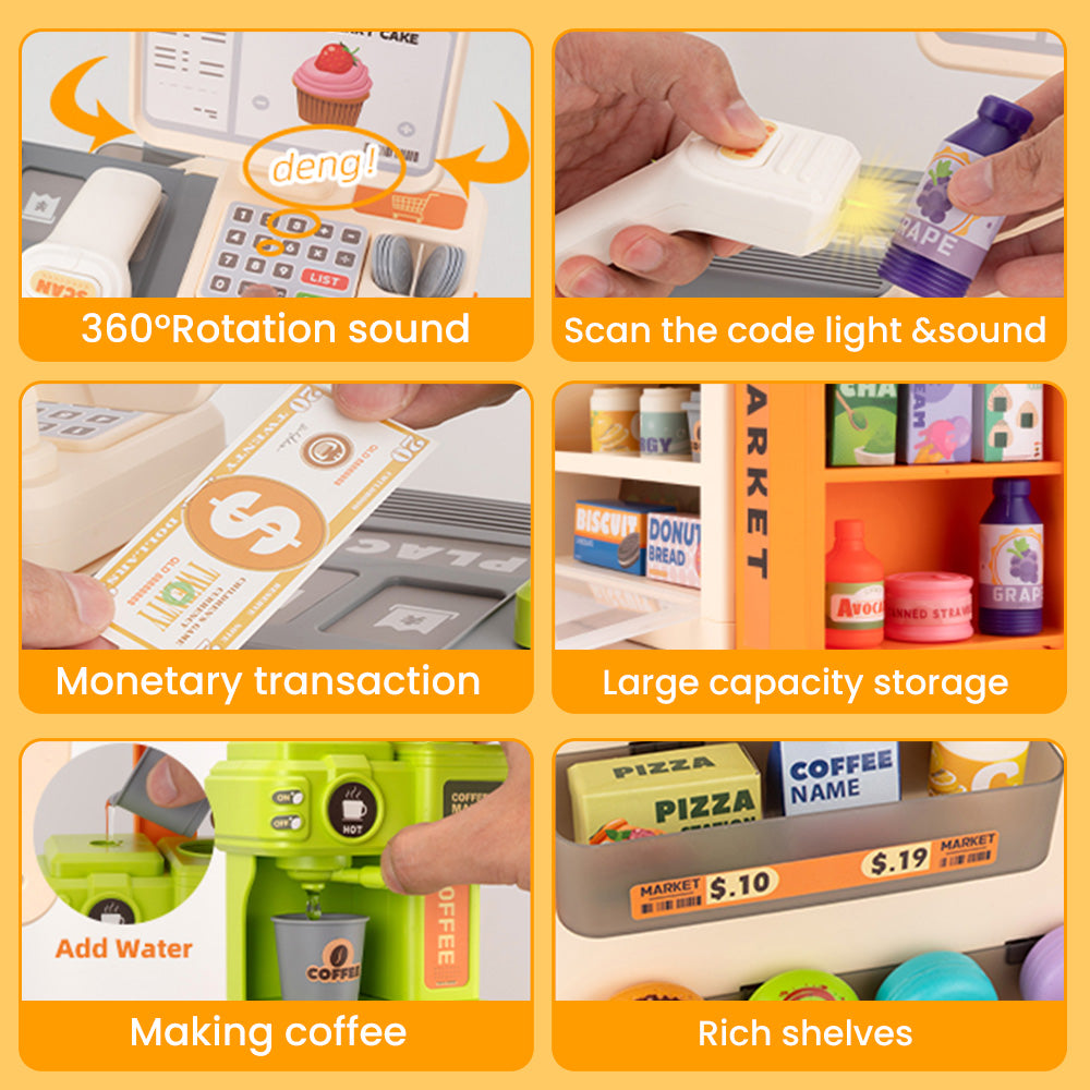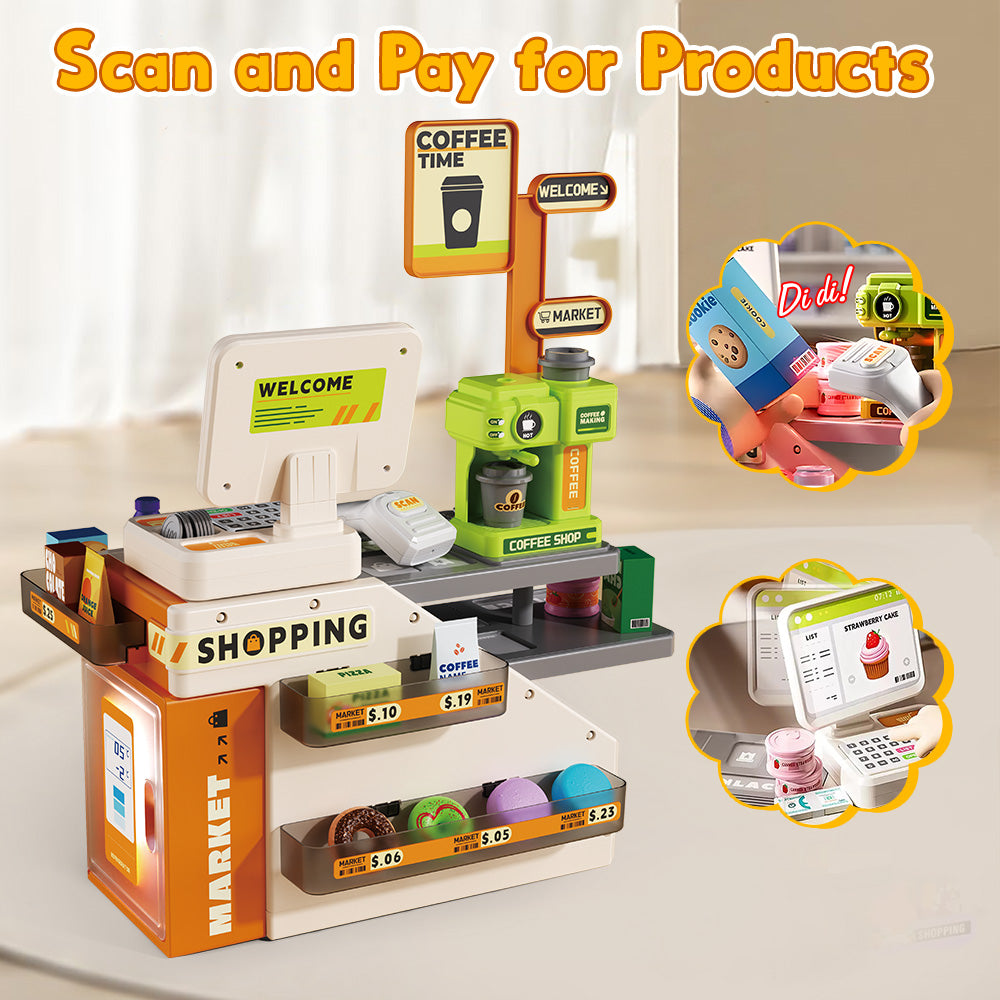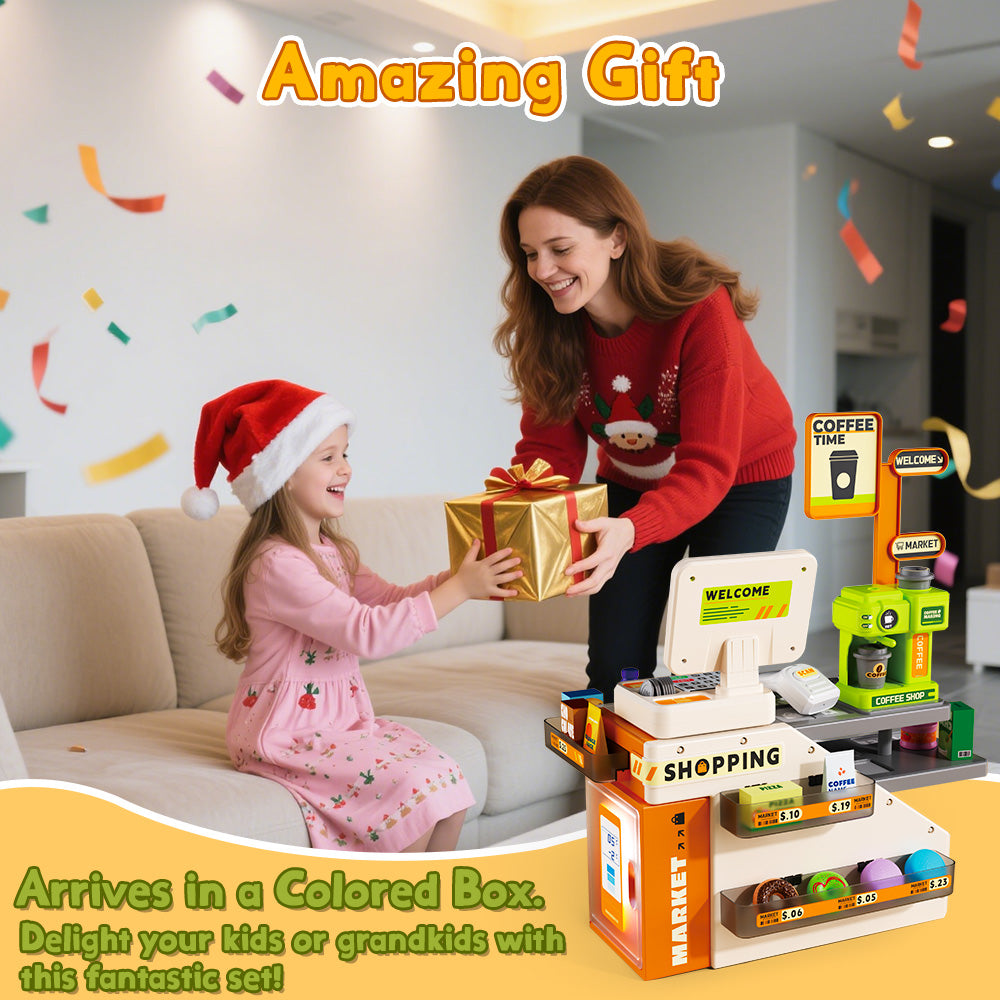 - 【All-in-One Role-Play Experience】Packed with interactive features like a coffee machine, barcode scanner, and calculator, this toy transforms playtime into an engaging learning adventure. Perfect for birthdays, holidays, or everyday fun, it helps kids build social, problem-solving, and organizational skills while having a blast.