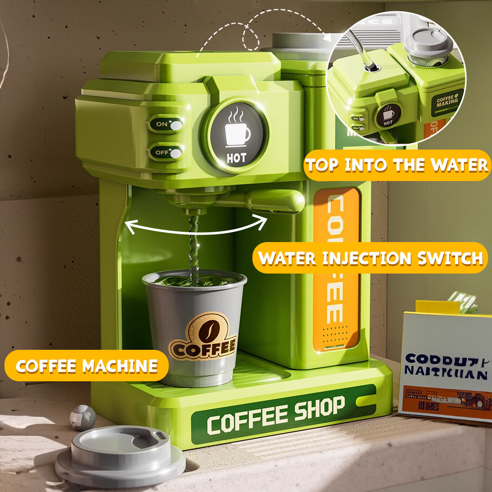 - 【Mini Coffee Machine with Real Water Dispensing】This interactive kid’s cash register features a built-in mini coffee machine that dispenses real water, adding a unique and realistic touch to imaginative café role-playing games. Perfect for sparking creative play and providing hours of entertainment.