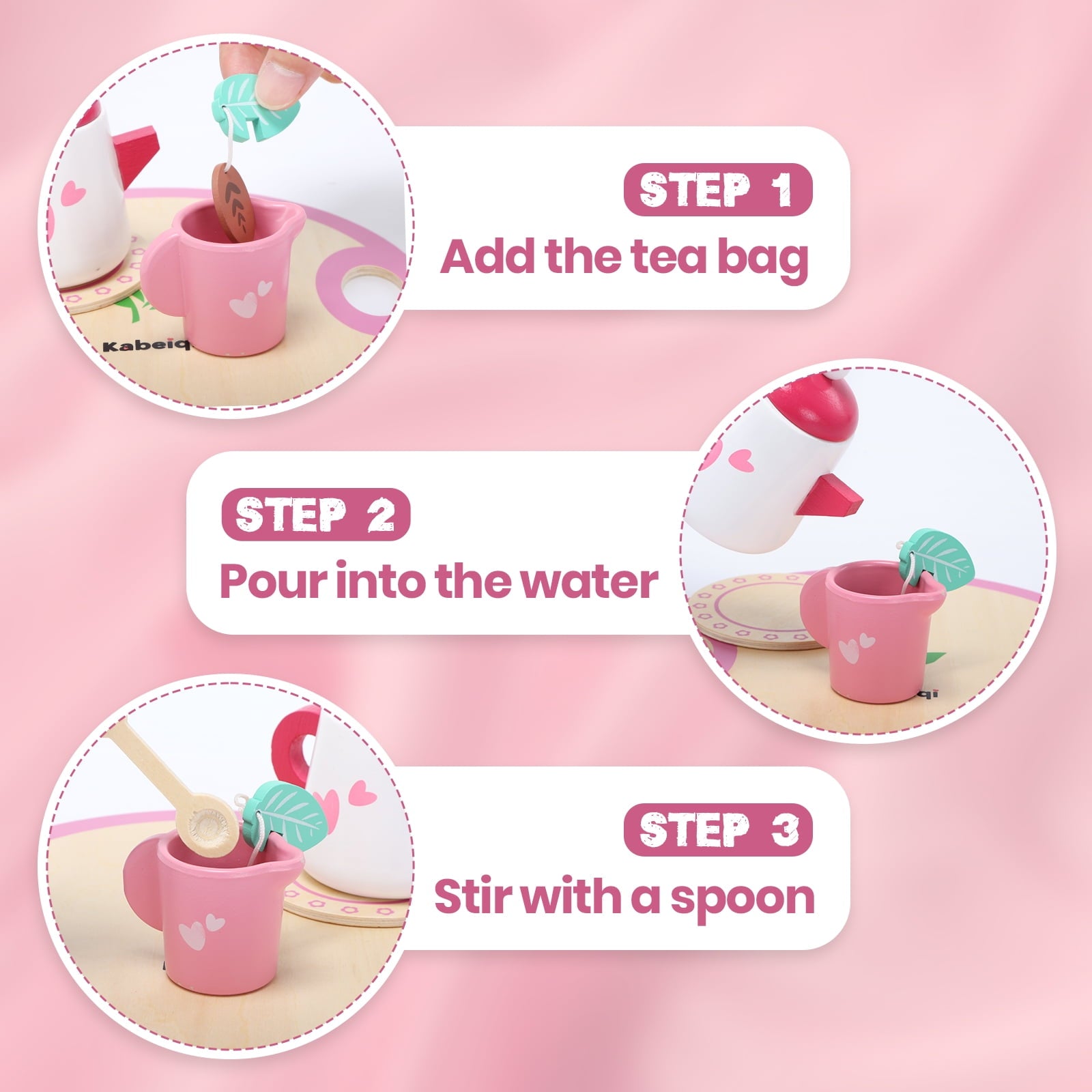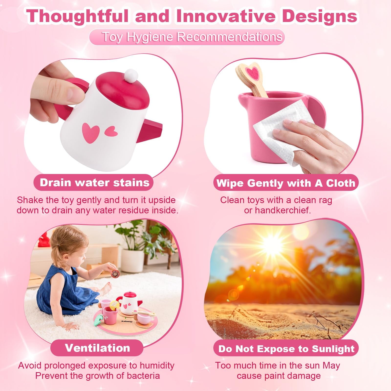 - Gift-Ready for Any Occasion?Crafted from smooth, high-quality wood with adorable colors and heart designs, this tea set makes a perfect birthday or holiday gift for girls and boys aged 3-5.