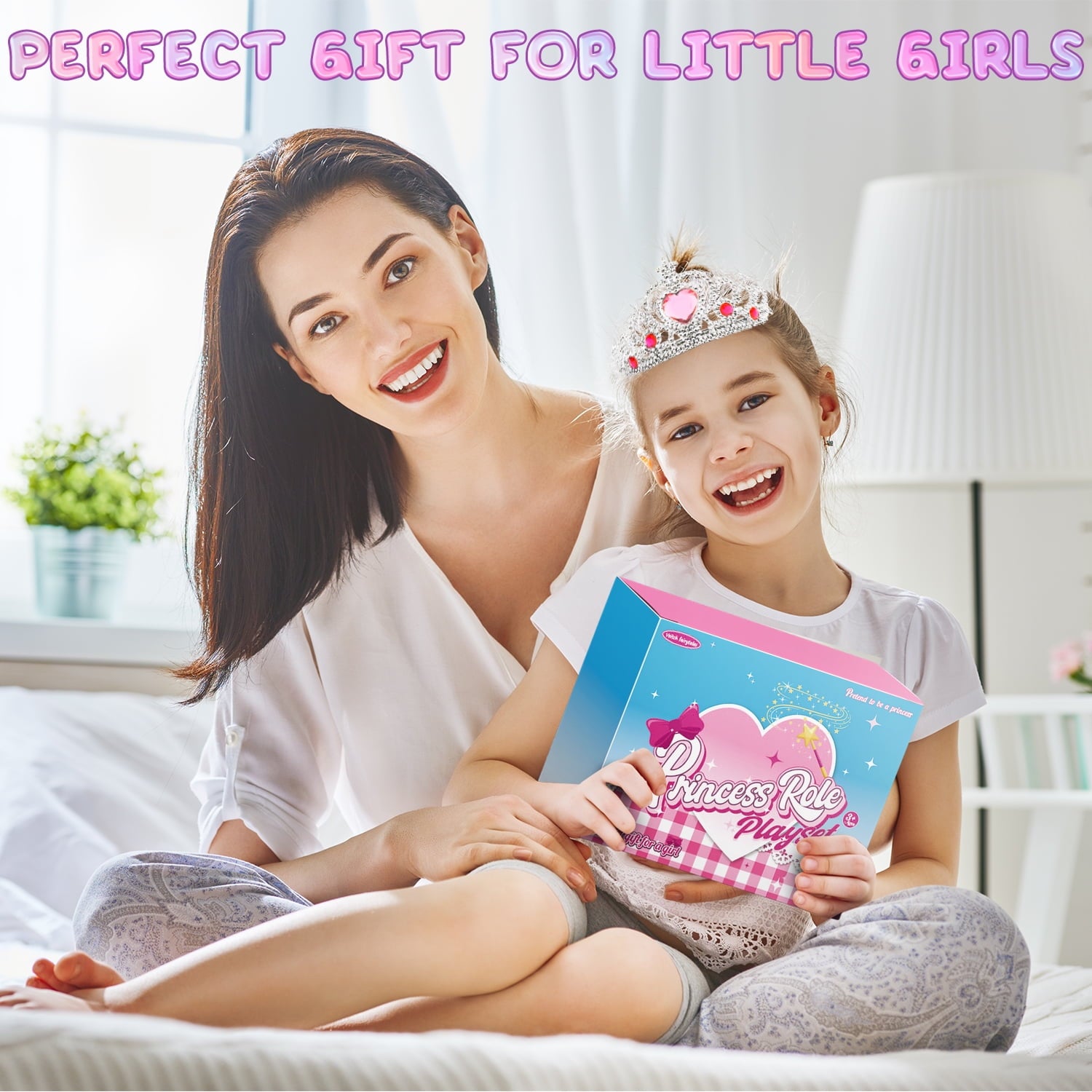 JoyStone Princess Cape Set 11 Pieces Dress Up Accessories Cloak with Tiara Crown Wand Gloves Presents Jewelry Toys for Toddler Girls 3-6 Years