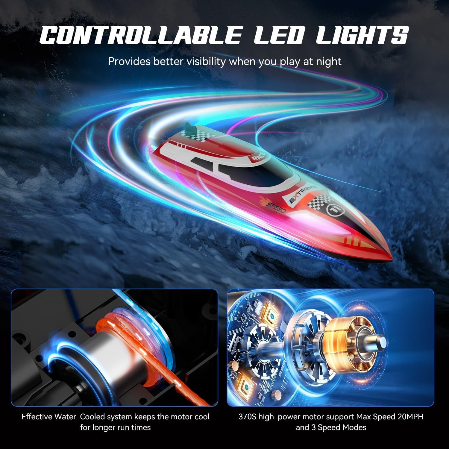 JoyStone RC Boat for Adults & Kids, 20+ MPH 2.4GHz Remote Control Boat for Pool and Lakes, with 2 Battery, 60 Min Running Time, Summer Toy