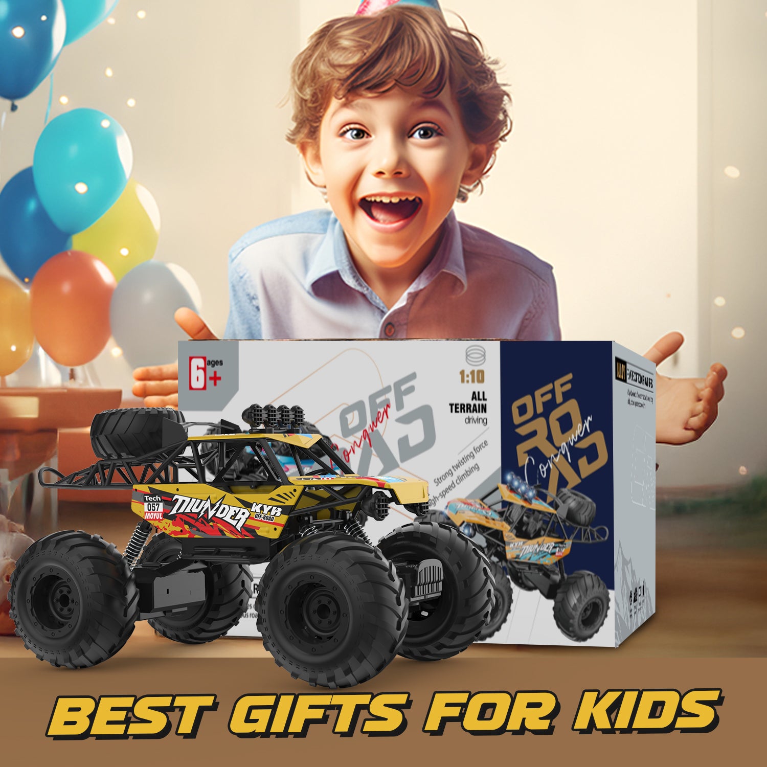 JoyStone RC truck features a durable metal car shell that adds realism and provides excellent protection against impacts and crashes. Built to withstand rough play and demanding terrains, this rc vehicle can conquer various terrains with ease.Whether it's tackling rocky trails, sandy dunes, or grassy fields, this RC car¡¯s all-terrain capabilities make it perfect for outdoor adventures. Electric vehicle comes with 2 rechargeable batteries that provide extended 90 min playtime, ensuring you can enjoy longer sessions of thrilling off-road adventures,? It makes a fantastic gift for RC enthusiasts, hobbyists, and kids who love off-road excitement.
