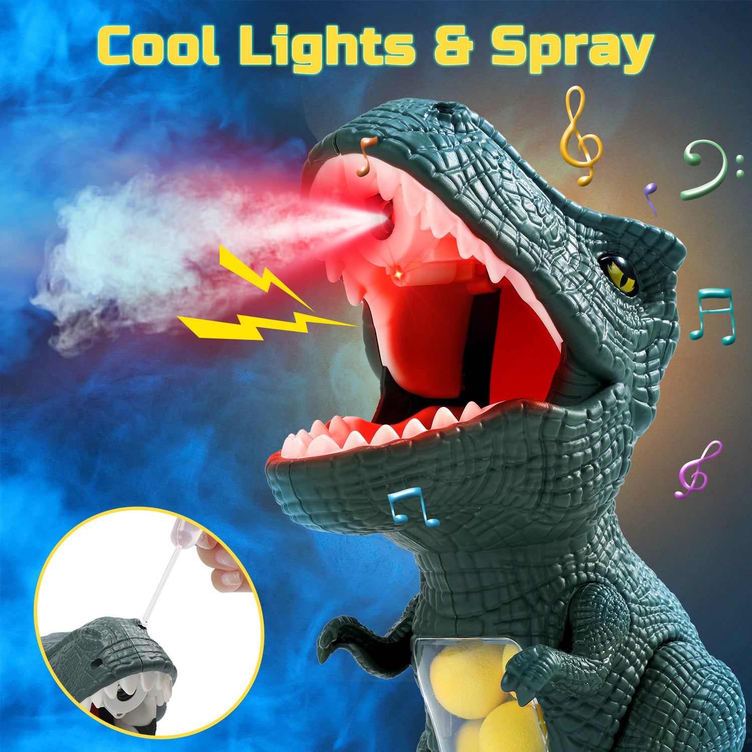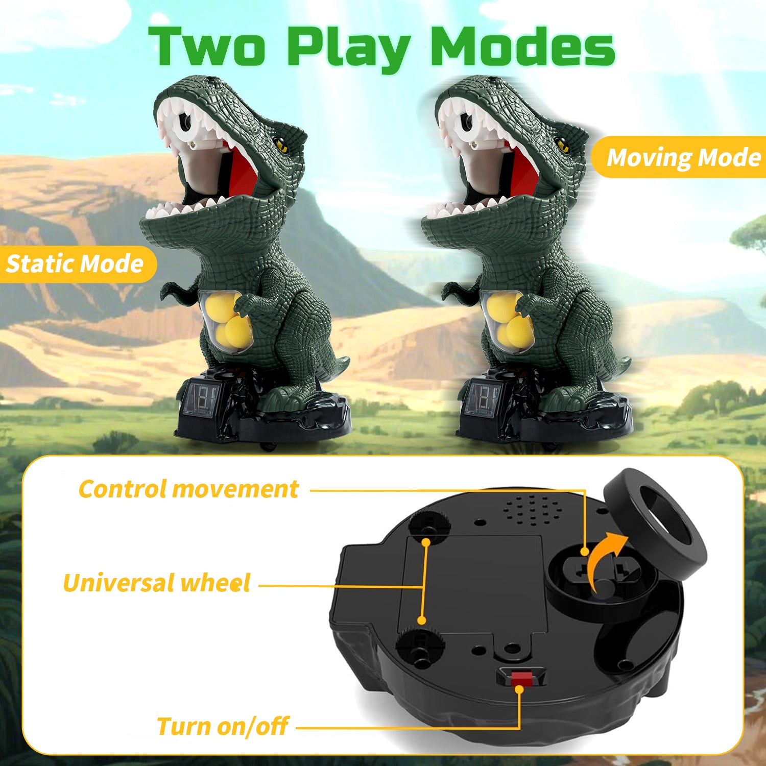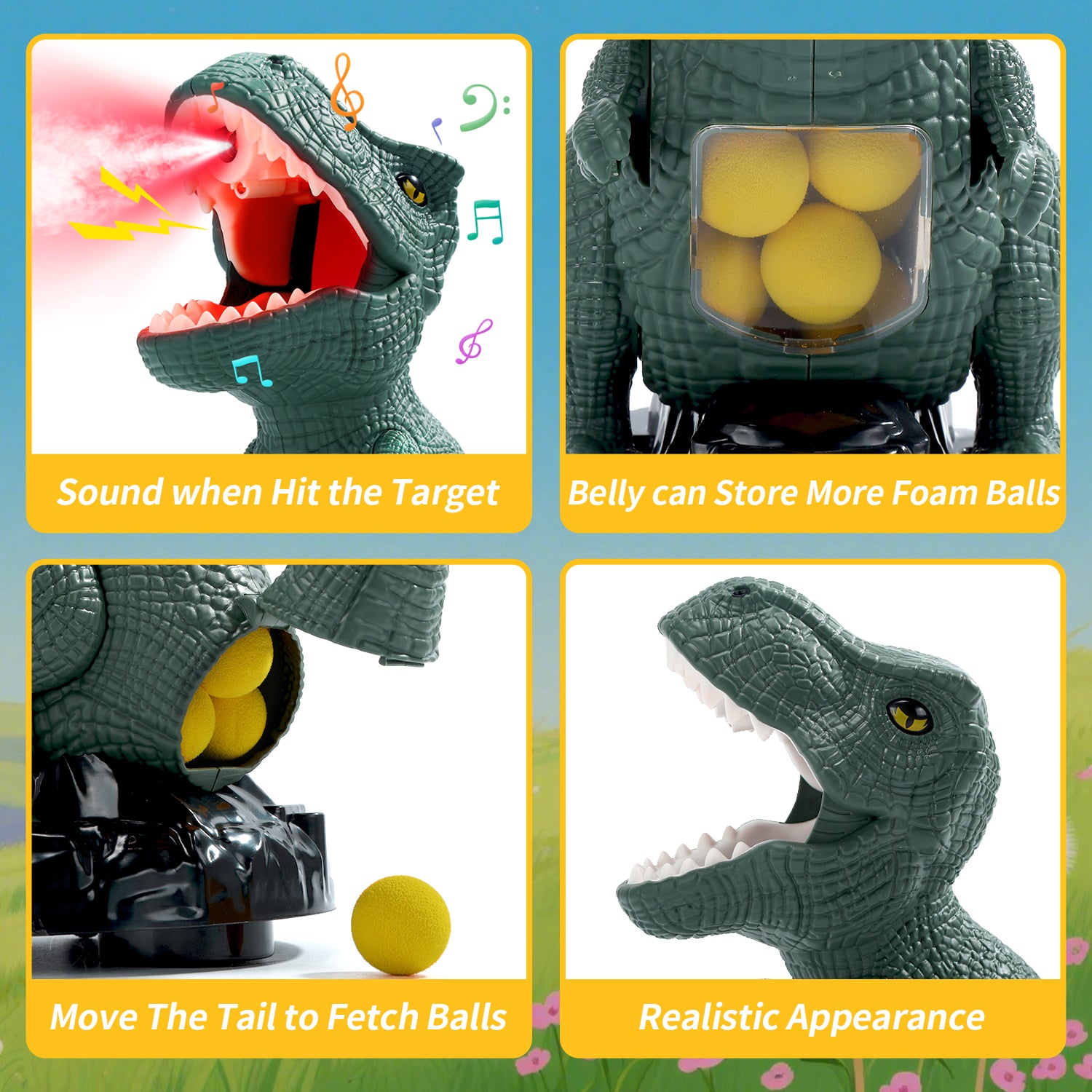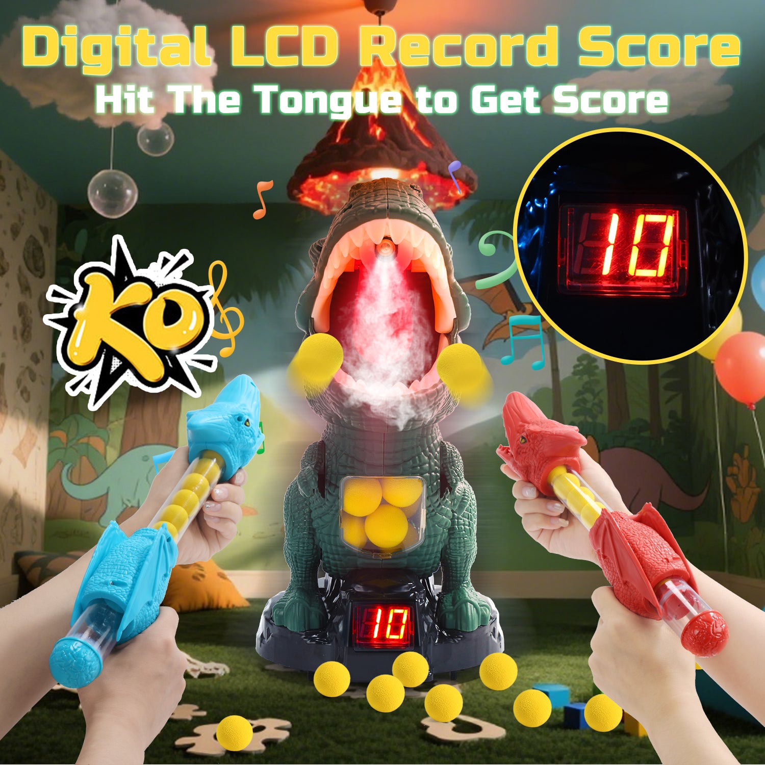 The kit includes 2 pack air blasters, 24 soft foam balls, 1 dinosaur-themed standing shooting target. Whether play independently or as a team against each other, it's flexible enough to meet all your needs. Good choice for indoor & outdoor activities