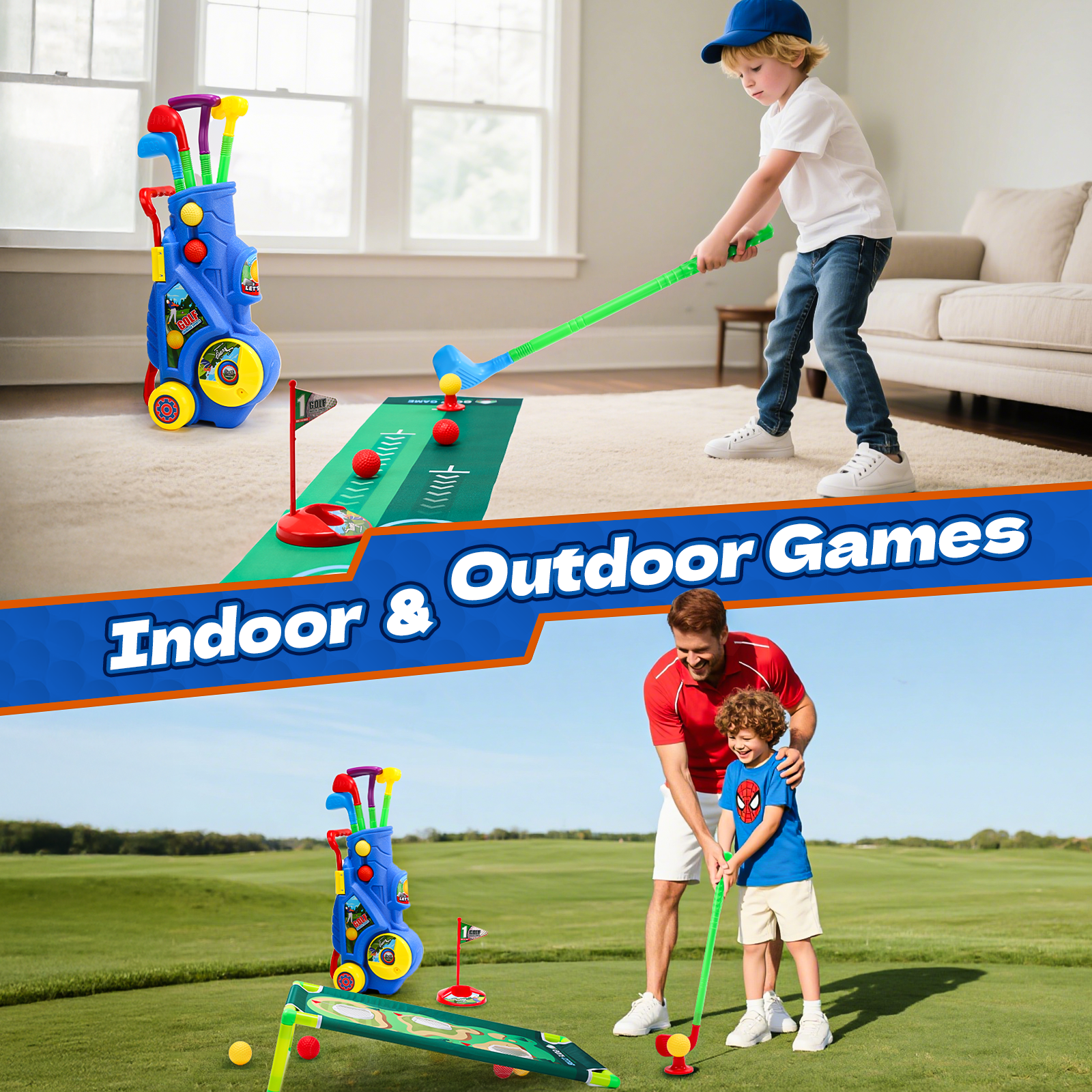 JoyStone Toddler Golf Set, Upgraded Kids Golf Cart with Golf Cornhole Board & Putting Mat, Indoor Outdoor Sports Golf Toys
