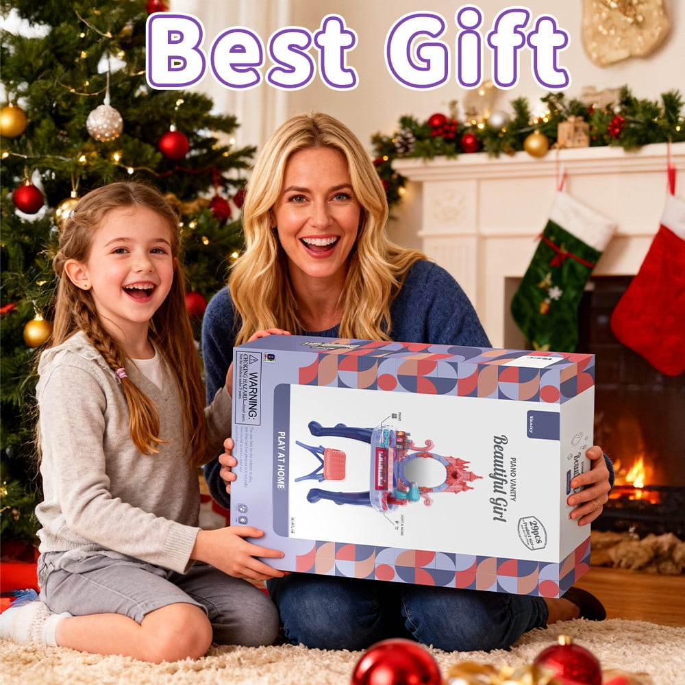 Toy Vanity & Beauty Salon Set help your little girls recognize their own beauty in the mirror. They will start to dress up themselves independently and learn to love themselves to become a happy and confident girl.
