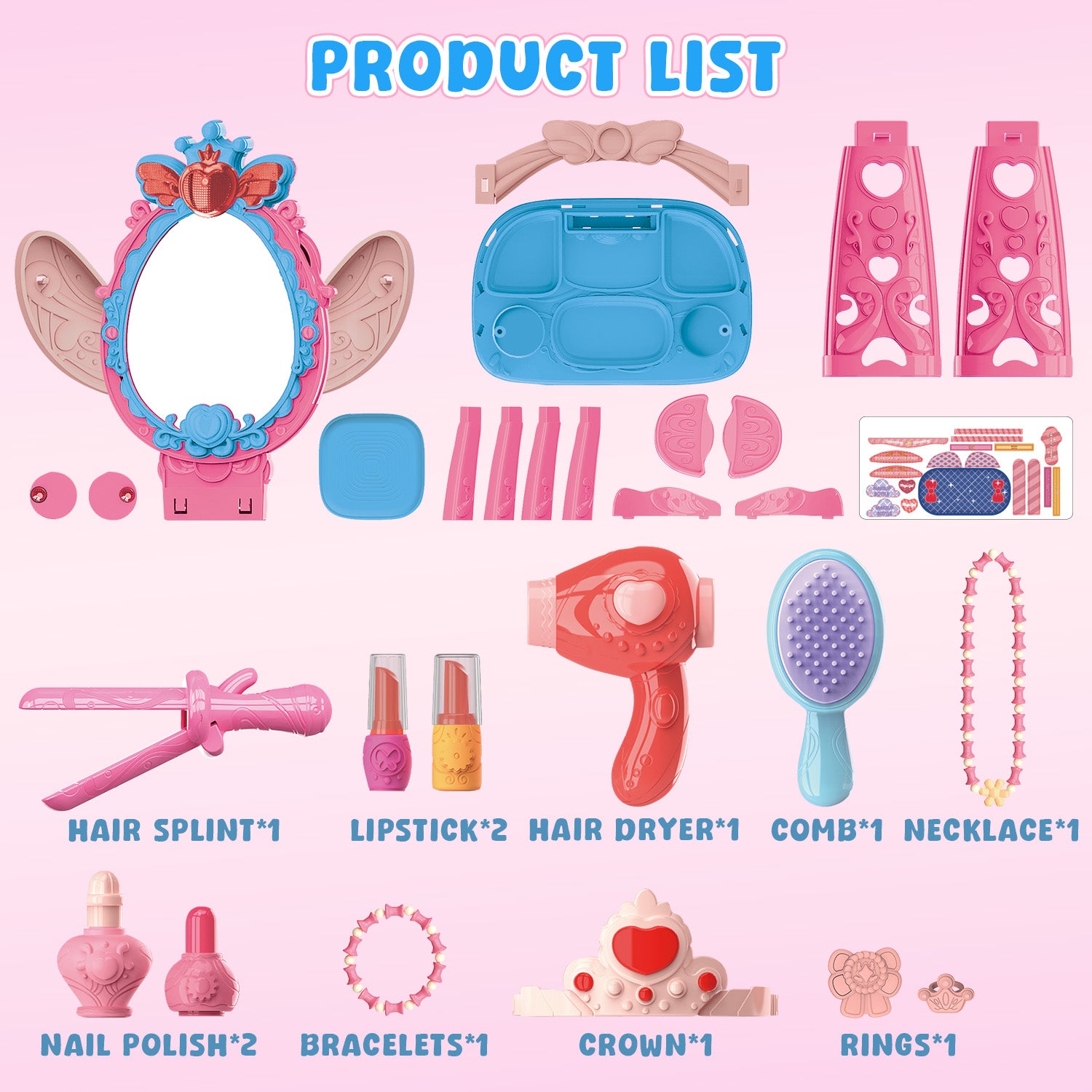 - 【Cultivation of skills】Kids vanity set with mirror provides your child with endless imagination and good temperament, and cultivates self-confidence and aesthetic ability. Train fine motor skills and social skills. Kids vanity set are a surprise gift for girls!