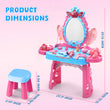 - 【Lights-up & Music】Your Little Princess Will Have the Dress-up Fun with Pretend Play Vanity Set: Toddler sized makeup vanity table with sound and light mirror measures around 23.11”L x 10.23”W x 29.13”H . And the stool is around 6.49”L x 6.49”W x 6.88”H. Perfect for 3-6 year old little princess. It doesn't take up too much room, great for even a crowded room. It’s also light weight so that can be moved around easily for kids.