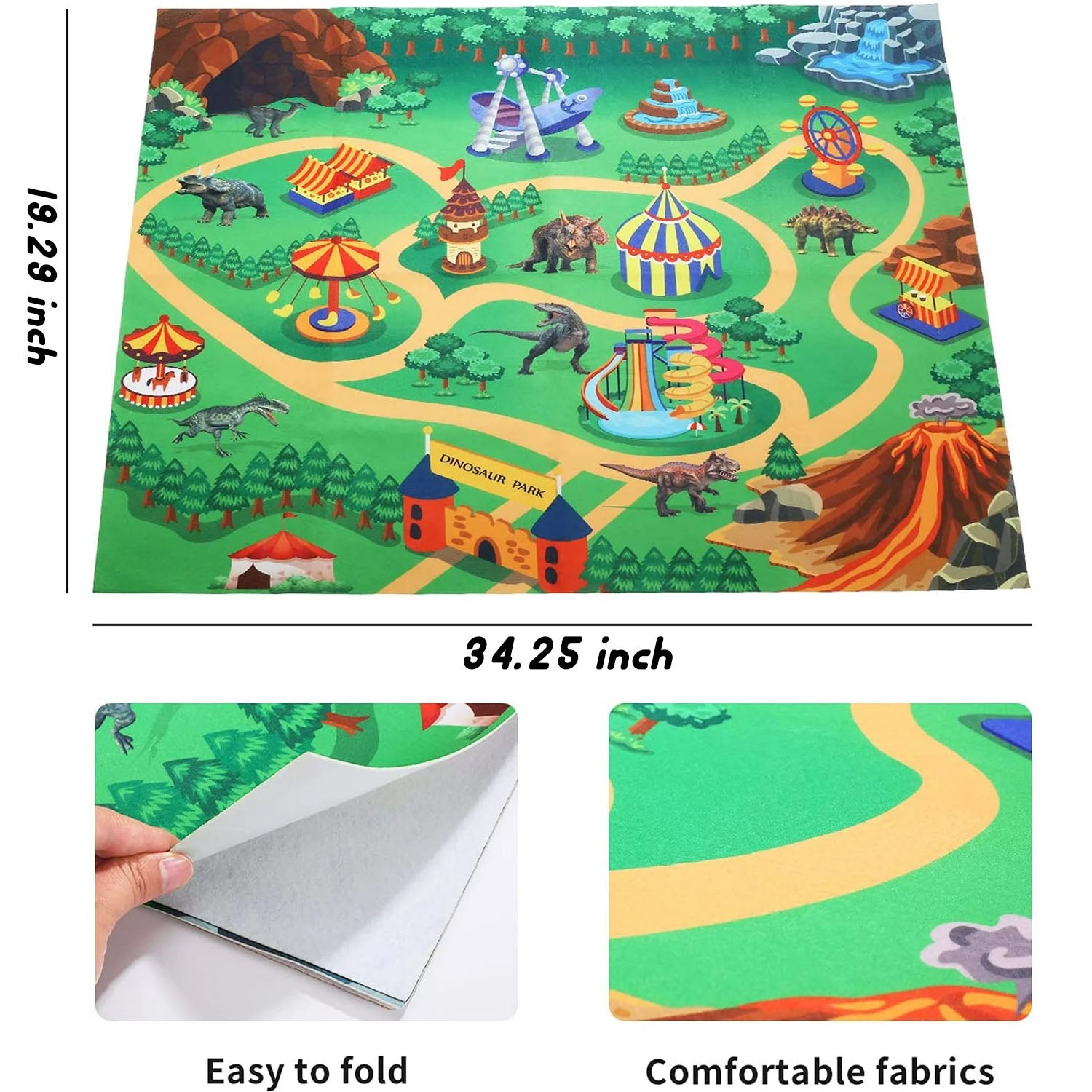 JoyStone toy dinosaur truck includes 4 realistic dinosaur figures, 2 vivid dinosaur friction cars, a fun playmat that shows various interesting dinosaur park scenes. Kids can play with their friends or parents, in the process of playing, your child's hands-on ability and imagination will be exercised invisibly. It's a great birthday gift for kids!